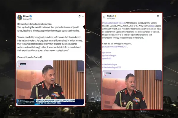 नई दिल्ली ,09 मार्च (आरएनएस)। मध्य पूर्व में ईरान, अमेरिका और इजरायल के बीच चल रहे भारी तनाव और युद्ध के हालात से पूरी दुनिया में खौफ का माहौल है। जहां एक तरफ सभी देश इस जंग के जल्द खत्म होने की उम्मीद कर रहे हैं, वहीं दूसरी तरफ पाकिस्तान अपनी नापाक हरकतों से बाज नहीं आ रहा है। इस युद्ध की आड़ में पाकिस्तान ने भारत की अंतरराष्ट्रीय छवि को खराब करने के लिए एक गहरी साजिश रची है। सोशल मीडिया पर भारतीय सेना प्रमुख के नाम से एक एआई-जनरेटेड (्रढ्ढ-द्दद्गठ्ठद्गह्म्ड्डह्लद्गस्र) डीपफेक वीडियो वायरल कर यह झूठा भ्रम फैलाने की कोशिश की जा रही है कि भारत ने ईरानी नौसेना के युद्धपोत ‘ढ्ढक्रढ्ढस् ष्ठद्गठ्ठड्डÓ की खुफिया लोकेशन इजरायल के साथ साझा की थी।