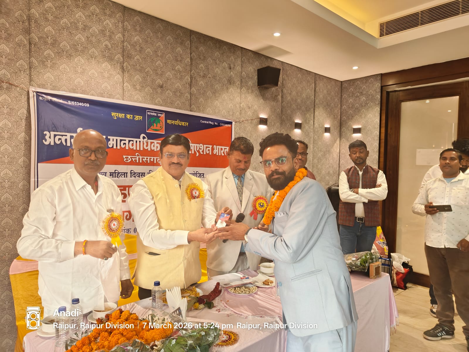 कार्यक्रम में मुख्य अतिथि के रूप में डॉ. बी. के. त्रिपाठी, निर्देशक एग्रीकल्चर विश्वविद्यालय रायपुर उपस्थित रहे। वहीं कार्यक्रम के विशिष्ट अतिथि के रूप में संगठन के चेयरमैन सुरेश सिंह तोमर और कार्यक्रम की अध्यक्षता प्रदेश अध्यक्ष राकेश कुमार महौत ने की। समारोह के दौरान अतिथियों ने महिला सशक्तिकरण, मानवाधिकार संरक्षण और सामाजिक जागरूकता को बढ़ावा देने पर जोर दिया।