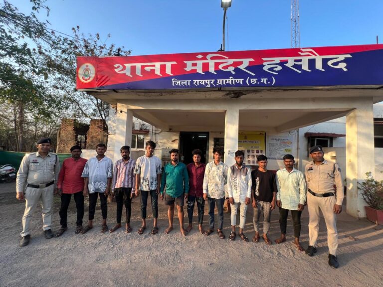 रायपुर 11 मार्च 2026(आरएनएस/ जिले में कानून व्यवस्था को मजबूत बनाने और असामाजिक तत्वों पर नकेल कसने के लिए रायपुर ग्रामीण पुलिस ने मंदिर हसौद क्षेत्र में बड़ा अभियान चलाया। पुलिस अधीक्षक रायपुर (ग्रामीण) श्रीमती श्वेता श्रीवास्तव सिन्हा के निर्देश पर चलाए गए इस विशेष अभियान में गुंडा-बदमाशों, अवैध गतिविधियों में शामिल लोगों और शराब तस्करों पर सख्त कार्रवाई की गई। अभियान के दौरान पुलिस ने कई संदिग्धों को हिरासत में लेकर कानूनी कार्रवाई की।