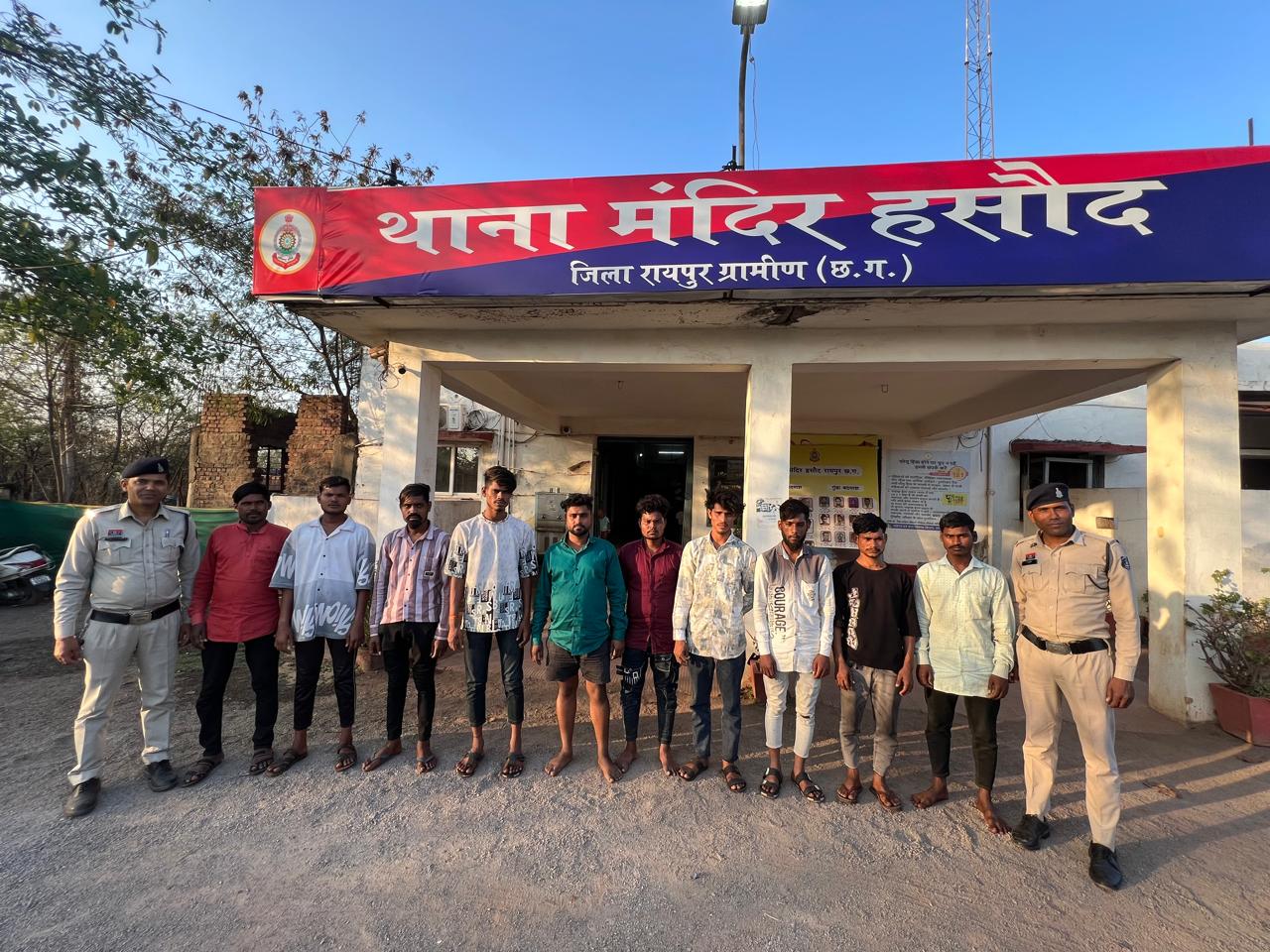 अतिरिक्त पुलिस अधीक्षक अभिषेक झा और उप पुलिस अधीक्षक माना लम्बोदर पटेल के मार्गदर्शन तथा थाना प्रभारी मंदिर हसौद निरीक्षक आशीष यादव के नेतृत्व में पुलिस टीम ने क्षेत्र में सक्रिय असामाजिक तत्वों के खिलाफ सघन अभियान चलाया। इस दौरान पुलिस ने शांति भंग की आशंका के चलते 10 लोगों के खिलाफ प्रतिबंधात्मक कार्रवाई की। जिन व्यक्तियों पर कार्रवाई की गई उनमें योगेश जोशी, धनेश्वर निषाद, शत्रुघ्न धृतलहरे, रवि यादव, सुरेश धीवर, रोशन धीवर, झुमुक वर्मा, लक्ष्मी नारायण वर्मा, वेद प्रकाश धीवर और बेसन मानिकपुरी शामिल हैं।