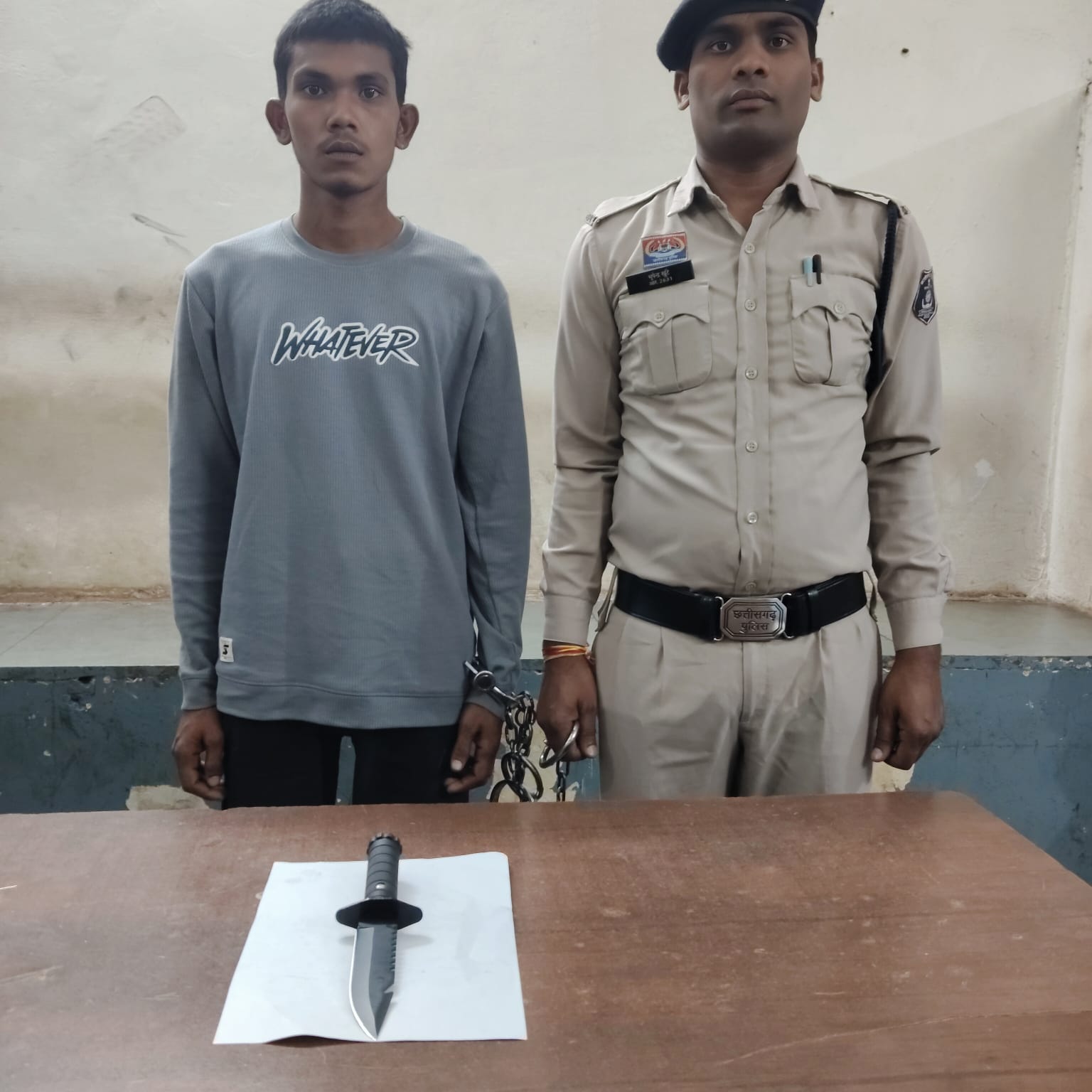 इसी अभियान के दौरान पुलिस को सूचना मिली कि ग्राम छतौना के सतनामी पारा में एक युवक हाथ में चाकू लेकर लोगों को डरा-धमका रहा है। मौके पर पहुंची पुलिस ने त्वरित कार्रवाई करते हुए आरोपी लोकेश बंजारे (19 वर्ष) निवासी ग्राम छतौना को गिरफ्तार कर लिया। आरोपी के कब्जे से चाकू बरामद किया गया। उसके खिलाफ थाना मंदिर हसौद में आर्म्स एक्ट की धारा 25 और 27 के तहत अपराध दर्ज कर कार्रवाई की गई।