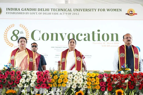 नई दिल्ली 13 March, (Rns)- दिल्ली की मुख्यमंत्री श्रीमती रेखा गुप्ता इंदिरा गांधी दिल्ली महिला तकनीकी विश्वविद्यालय (आईजीडीटीयूडब्ल्यू) के 8वें दीक्षांत समारोह में शामिल हुईं। उन्होंने स्नातक हो रही छात्राओं को बधाई दी और उनके उज्ज्वल भविष्य की कामना की। मुख्यमंत्री ने कहा कि दीक्षांत समारोह केवल पढ़ाई का अंत नहीं, बल्कि जीवन की नई शुरुआत है। उन्होंने छात्राओं से कहा कि वे जिज्ञासा, नवाचार और जिम्मेदारी के साथ आगे बढ़ें और अपने ज्ञान व तकनीक का उपयोग समाज और देश के हित में करें।