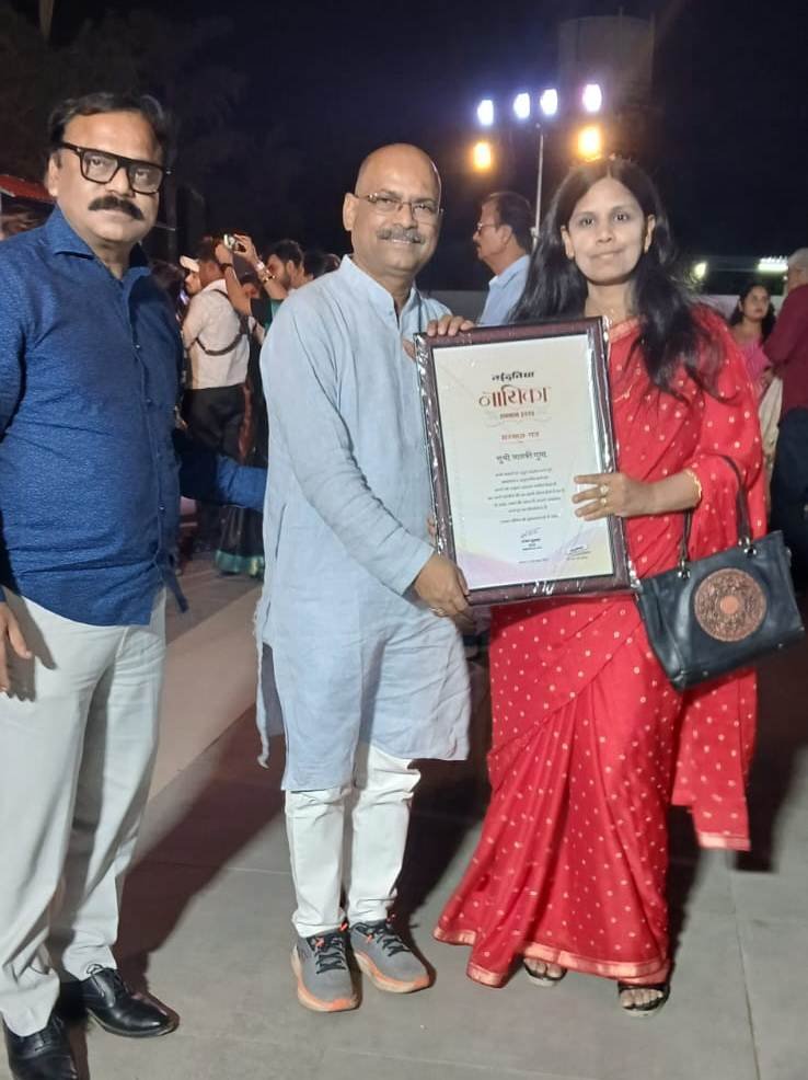 धमतरी, 22 मार्च (आरएनएस)। गर्व का क्षण 21 मार्च नई दुनिया नायिका सम्मान 2026 अनुकरणीय कार्य के लिए नवनिर्वाचित सांसद लक्ष्मी वर्मा ,रायपुर महापौर मीनल चौबे ,फिल्म विकास बोर्ड अध्यक्ष मोना सेन, बाल संरक्षण आयोग अध्यक्ष वर्णिका शर्मा, ममता साहू पूर्व राज्य महिला आयोग सदस्य, सीईओ नई दुनिया श्री संजय शुक्ला द्वारा वरिष्ठ समाजसेवी जानकी गुप्ता दिव्यांग जन वित्त एवं विकास निगम छत्तीसगढ़ संचालक मंडल सदस्य को समाजसेवा एवं कला के क्षेत्र में नायिका सम्मान प्राप्त हुआ।