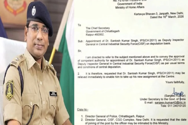गृह मंत्रालय (Ministry of Home Affairs) ने उनकी केंद्रीय प्रतिनियुक्ति को मंजूरी देते हुए आधिकारिक आदेश जारी कर दिया है। इसके साथ ही छत्तीसगढ़ के मुख्य सचिव को पत्र भेजकर संतोष सिंह को तत्काल प्रभाव से नई जिम्मेदारी के लिए रिलीव करने के निर्देश दिए गए हैं।