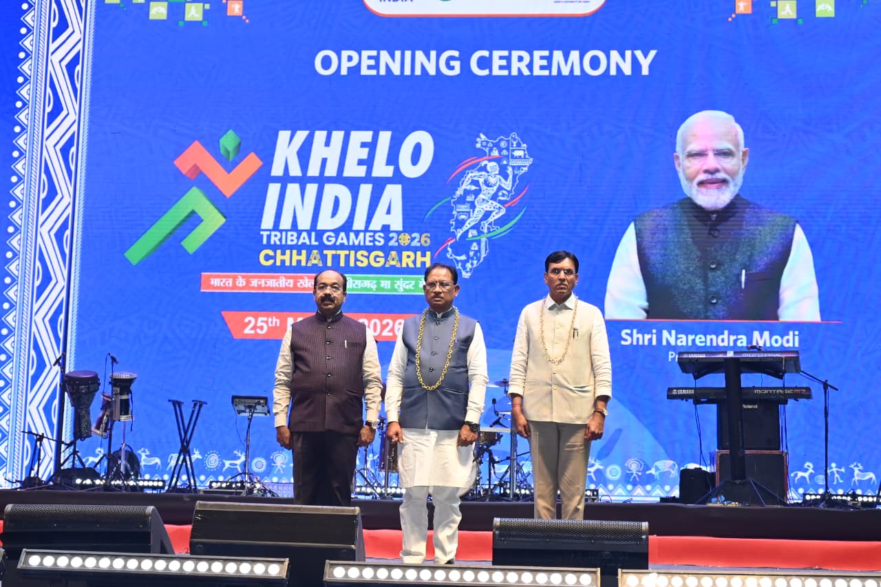 रायपुर, 25 मार्च 2026 (आरएनएस)। छत्तीसगढ़ की राजधानी रायपुर में देश के पहले ‘खेलो इंडिया ट्राइबल गेम्स 2026’ का भव्य शुभारंभ हुआ। साइंस कॉलेज ग्राउंड में आयोजित इस कार्यक्रम में मुख्यमंत्री विष्णुदेव साय और केंद्रीय खेल मंत्री डॉ. मनसुख मांडविया मुख्य रूप से उपस्थित रहे।