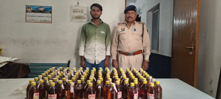 रायपुर 29 मार्च (आरएनएस) खरोरा थाना क्षेत्र में 29 मार्च 2026 को अवैध शराब कारोबार पर बड़ी कार्रवाई करते हुए पुलिस ने ग्राम चिचोली में चल रहे एक गुप्त नेटवर्क का पर्दाफाश कर दिया, मुखबिर से मिली पुख्ता सूचना के आधार पर पुलिस टीम ने यादव चिकन एवं मछली सेंटर पर दबिश दी जहां एक युवक दुकान की आड़ में अवैध शराब बेच रहा था, मौके पर घेराबंदी कर संदिग्ध को पकड़ा गया जिसने पूछताछ में अपना नाम ईश्वर उर्फ बिट्टू, उम्र 19 वर्ष, निवासी नवागांव वार्ड क्रमांक 09 बताया, तलाशी के दौरान दुकान के अंदर एक बोरी में छुपाकर रखी गई 120 पौवा देशी मदिरा (मसाला शोले) बरामद हुई, जांच में सामने आया कि आरोपी ग्राहकों को खाने की दुकान के बहाने बुलाकर अंदर से शराब सप्लाई करता था ताकि पुलिस की नजर से बच सके, पुलिस ने आरोपी के कब्जे से 120 पौवा अवैध शराब के साथ बिक्री की नगदी ₹3,600 सहित कुल ₹15,600 की सामग्री जप्त की, इस मामले में अपराध क्रमांक 171/2026 दर्ज कर आबकारी अधिनियम धारा 34(2) के तहत कार्रवाई की गई, पूरी कार्रवाई पुलिस अधीक्षक ग्रामीण श्वेता श्रीवास्तव सिन्हा के निर्देशन, अतिरिक्त पुलिस अधीक्षक प्रशांत शुक्ला के मार्गदर्शन और एसडीओपी विधानसभा वीरेन्द्र चतुर्वेदी के पर्यवेक्षण में की गई, कार्रवाई के बाद आरोपी को न्यायालय में पेश किया गया जहां से उसे न्यायिक अभिरक्षा में जेल भेज दिया गया, पुलिस की त्वरित रणनीति—मुखबिर इनपुट, लोकेशन वेरिफिकेशन, रेड और मौके पर गिरफ्तारी—ने इस अवैध धंधे का तुरंत अंत कर दिया ।