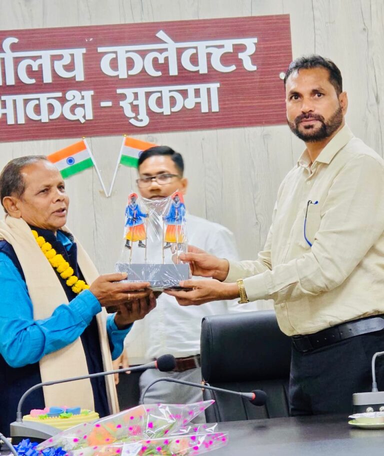 सुकमा,01 अप्रैल (आरएनएस)। कलेक्ट्रेट के राजस्व विभाग में 30 वर्षों की शासकीय सेवा पूर्ण कर बलदेव मांझी सेवानिवृत्त हुए। इस अवसर पर बुधवार को कलेक्ट्रेट सभाकक्ष में आयोजित गरिमामयी कार्यक्रम में उन्हें भावभीनी विदाई दी गई। इस अवसर पर उन्हें साल-श्रीफल और मोमेंटो भेंट कर सम्मानित किया गया। डिप्टी कलेक्टर शबाब ख़ान एवं मधु तेता ने उनके उत्कृष्ट कार्यों की सराहना करते हुए उज्ज्वल भविष्य एवं सुखद जीवन की शुभकामनाएं दीं। इस अवसर पर मांझी का जन्मदिन भी मनाया गया। कार्यक्रम में कलेक्ट्रेट के अधिकारी-कर्मचारी उपस्थित रहे और सभी ने उनके सेवाकाल को प्रेरणादायक बताया।