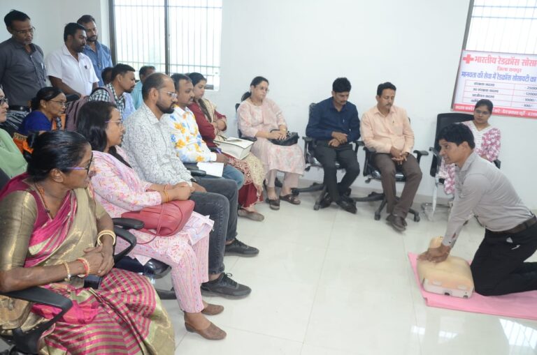 रायपुर,01 अप्रैल (आरएनएस)। मुख्यमंत्री श्री विष्णु देव साय के निर्देशन में जिला प्रशासन रायपुर एवं रेड क्रॉस सोसाइटी, जिला शाखा रायपुर के संयुक्त प्रयास से प्रोजेक्ट सुरक्षा कार्यक्रम के अंतर्गत महत्वपूर्ण जीवनरक्षक प्रशिक्षण कार्यक्रम का आयोजन किया गया। प्रोजेक्ट सुरक्षा कार्यक्रम के अंतर्गत आज 45 लोक स्वास्थ्य यांत्रिकी विभाग के कर्मचारियों को प्राथमिक उपचार किट के उपयोग और सीपीआर तकनीक का प्रशिक्षण प्रदान किया गया।रेडक्रॉस सोसाइटी, जिला शाखा रायपुर के सहायक प्रबंधक श्री देवप्रकाश कुर्रे ने प्रशिक्षण का संचालन करते हुए आपातकालीन परिस्थितियों में जीवन रक्षक तकनीकों की महत्ता को समझाया। उन्होंने सीपीआर की विस्तृत विधि का व्यवहारिक प्रदर्शन किया। साथ ही यह बताया कि कैसे सांस रुकने या हृदय गति बंद होने जैसी गंभीर स्थितियों में समय रहते सही तरीके से दी गई सहायता किसी व्यक्ति की जान बचा सकती है।कलेक्टर डॉ गौरव सिंह के निर्देशानुसार संचालित प्रोजेक्ट सुरक्षा के तहत 16 जुलाई 2025 से अब तक 17,414 लोगों को 150 बैच के माध्यम से प्रशिक्षण दिया गया है ।