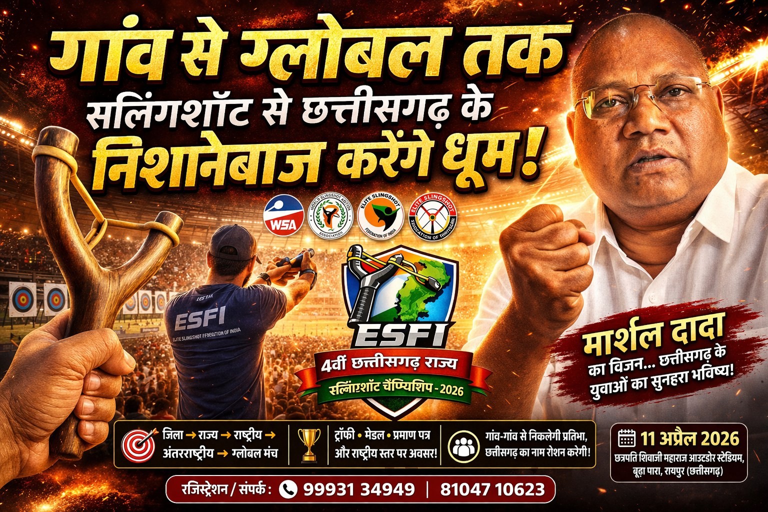 रायपुर 4 अप्रैल (आरएनएस) छत्तीसगढ़ के युवाओं के लिए खेल की दुनिया में बड़ा धमाका होने जा रहा है—गांव की गलियों से निकलकर अब निशानेबाज़ सीधे अंतरराष्ट्रीय मंच तक पहुंचेंगे, क्योंकि एलीट स्लिंगशॉट एसोसिएशन ऑफ छत्तीसगढ़ के नेतृत्व में पहली बार स्लिंगशॉट खेल को राज्य में संगठित पहचान मिल रही है और इसके पीछे प्रदेश अध्यक्ष दुर्जन सिंह धुर्वे (मार्शल दादा)का बड़ा विज़न साफ दिखाई दे रहा है, जिन्होंने साफ कहा है कि यह सिर्फ एक प्रतियोगिता नहीं बल्कि छत्तीसगढ़ की छुपी प्रतिभाओं को दुनिया तक पहुंचाने का मिशन है, इसी कड़ी में 4वीं छत्तीसगढ़ स्टेट स्लिंगशॉट चैम्पियनशिप 2026 युवाओं के लिए सुनहरा मौका बनकर सामने आई है जहां खिलाड़ी अपनी सटीकता, एकाग्रता और कौशल का दम दिखाएंगे, प्रतियोगिता की शुरुआत जिला और ब्लॉक स्तर से होगी जहां स्थानीय खिलाड़ी टारगेट शूटिंग के जरिए अपनी प्रतिभा साबित करेंगे और यहीं से चुने गए खिलाड़ी राज्य स्तरीय चैम्पियनशिप में एंट्री पाएंगे, इस राज्य स्तरीय मुकाबले में करीब 200 प्रतिभागियों के बीच कड़ी टक्कर देखने को मिलेगी और यहीं से चुने गए टॉप खिलाड़ी राष्ट्रीय स्तर यानी ऑल इंडिया स्लिंगशॉट प्रतियोगिता में उतरेंगे जहां देशभर के खिलाड़ियों से सीधी भिड़ंत होगी, इसके बाद सर्वश्रेष्ठ खिलाड़ी अंतरराष्ट्रीय मंच पर भारत का प्रतिनिधित्व करेंगे, इस पूरी प्रक्रिया को अंतरराष्ट्रीय स्तर से जोड़ने में World Slingshot Association की अहम भूमिका है जो स्विट्ज़रलैंड के कानून के तहत स्थापित एक वैश्विक संस्था है और ओलंपिक मूल्यों के साथ इस खेल को आगे बढ़ा रही है, वहीं भारत में इस खेल को तकनीकी मजबूती देने का काम Elite Slingshot Federation of India कर रही है जो 30 वर्षों के अनुभव के साथ खिलाड़ियों को राष्ट्रीय और अंतरराष्ट्रीय मंच से जोड़ रही है, प्रतियोगिता का पूरा फॉर्मेट बेहद सख्त और पारदर्शी रखा गया है जिसमें तय दूरी से निशाना लगाना होगा, सीमित शॉट्स मिलेंगे और हर शॉट की सटीकता के आधार पर स्कोर तय होगा, सबसे ज्यादा अंक पाने वाला खिलाड़ी विजेता घोषित होगा, विजेताओं को ट्रॉफी, मेडल, प्रमाण पत्र के साथ राष्ट्रीय प्रतियोगिता में जाने का मौका मिलेगा, इस पहल का असली मकसद सिर्फ मेडल जीतना नहीं बल्कि गांव-गांव में खेल संस्कृति को मजबूत करना, युवाओं में अनुशासन और आत्मविश्वास बढ़ाना और कम संसाधनों में बड़ा सपना देखने की ताकत देना है, आने वाले समय में हर जिले में प्रशिक्षण केंद्र खोलने, स्कूल-कॉलेज तक खेल पहुंचाने और राष्ट्रीय लीग तैयार करने की योजना भी बनाई जा रही है, इस बीच इस बहुप्रतीक्षित प्रतियोगिता का आयोजन 11 अप्रैल 2026 को छत्रपति शिवाजी महाराज आउटडोर स्टेडियम बूढ़ापारा रायपुर में किया जाएगा, जहां राज्यभर के न