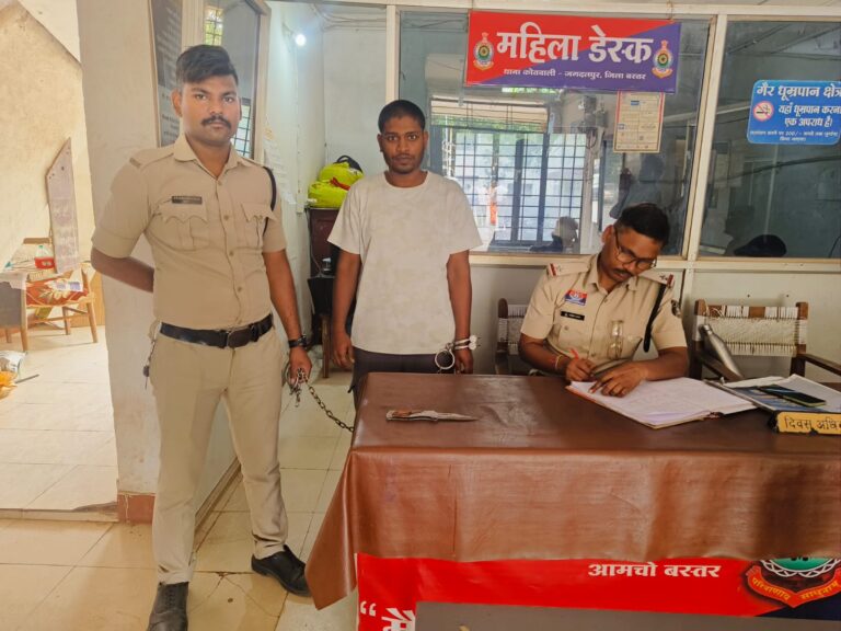 जगदलपुर,05 अप्रैल (आरएनएस)।एसपी शलभ कुमार सिन्हा के नेतृत्व मेें बस्तर पुलिस के द्वारा अपराधिक तत्वों के विरूद्ध लगातार कार्यवाही किया जा रहा है। इसी तारतम्य में सार्वजनिक स्थान में धारदार बटन वाला चाकू को रखकर डरा धमका करने वाले आरोपी को गिरफ्तार करने में बस्तर पुलिस को सफलता मिली है। ज्ञात हो कि कोतवाली में शाम करीब 8 बजे सूचना मिला कि लालबाग मैदान शौचालय के पास एक लड़का अपने पास बटनदार चाकू रखा है आने जाने वाले लोगों को डरा धमका रहा है। मुखबिर की सूचना पर तत्काल एसपी शलभ कुमार सिन्हा के दिशानिर्देशन में एएसपी माहेश्वर नाग के मार्गदर्शन एवं सीएसपी सुमित कुमार डी धोत्रे के पर्यवेक्षण में थाना प्रभारी कोतवाली लीलाधर राठौर के नेतृत्व में तत्काल कार्यवाही हेतु टीम रवाना किया गया, पुलिस टीम मौके पर जाकर घेराबंदी कर युवक को मिलने पर गवाह के समक्ष युवक के विधिवत तलाशी लेने पर युवक के जेब से धारदार बटन वाला चाकू मिला। जिसे रखने के संबंध में दस्तावेज मांग करने पर युवक द्वारा अवैध रूप से रखना स्वीकार किया जिसे मौके पर जप्त कर आरोपी के विरुद्ध आम्र्स एक्ट में अपराध दर्ज कर गिरफ्तार कर रिमांड में न्यायालय पेश किया गया है। महत्वपूर्ण भूमिका अदा करने में टीआई लीलाधर राठौर,उ.नि.अरुण मरकाम सउनि – कार्तिक सिन्हा,