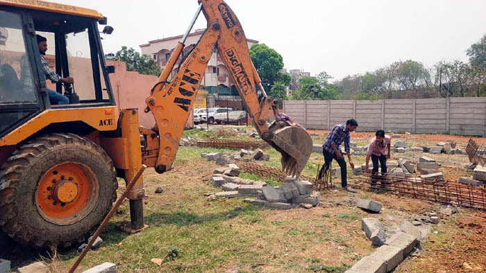 रायपुर, 07 अप्रैल (आरएनएस)। रायपुर नगर पालिक निगम के आयुक्त विश्वदीप के निर्देश पर नगर पालिक निगम जोन 8 जोन कमिश्नर श्रीमती राजेश्वरी पटेल के नेतृत्व एवं कार्यपालन अभियंता अतुल चोपड़ा, सहायक अभियंता अमन चंद्राकर, उपअभियंता लोचन चौहान एवं नगर निवेश विभाग टीम के अन्य सम्बंधित कर्मचारियों की उपस्थिति में नगर निगम जोन 8 क्षेत्र अंतर्गत शहीद भगत सिंह वार्ड कमांक 21 क्षेत्र अंतर्गत टाटीबंध स्थित किड्सजी स्कूल के पास लगभग 25000 वर्गफीट भुखण्ड पर अवैध रुप से की जा रही प्लॉटिंग पर जोन 8 नगर निवेश विभाग की टीम ने जेसीबी मशीन की सहायता से स्थल पर किए गए मुरूम रोड को काटने की कार्रवाई कर और वहाँ का आवागमन अवरुद्ध करते हुए स्थल पर तत्काल कारगर रोक लगायी गयी तथा किए जा रहे अवैध निर्माण को तत्काल तोडऩे की कार्रवाई की गयी.