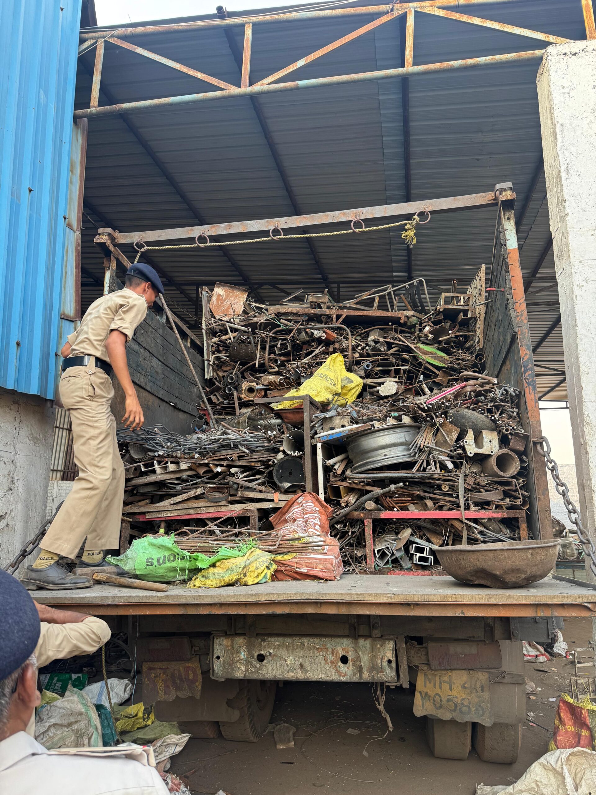 राजनांदगांव 8 अप्रैल (आरएनएस) कबाड़ी कारोबार की आड़ में चोरी के सामान की खरीद-फरोख्त का बड़ा नेटवर्क पुलिस ने एक ही दिन में ध्वस्त कर दिया, लगातार मिल रही शिकायतों और चोरी की वारदातों में कबाड़ियों की संलिप्तता के इनपुट पर एसपी अंकिता शर्मा के निर्देश और अतिरिक्त पुलिस अधीक्षक कीर्तन राठौर के पर्यवेक्षण में 7 अप्रैल 2026 को 7 विशेष टीमों ने एक साथ शहर और आसपास के इलाकों में ताबड़तोड़ छापेमारी की और देखते ही देखते लाखों का अवैध कबाड़ जब्त कर लिया, चिखली चौकी क्षेत्र के खैरागढ़ रोड स्थित सफीक खान उर्फ बैगा के यार्ड में संचालक शेख शहबाज के ठिकाने पर रेड मारकर 17,210 किलो लोहे का माल, मिनी ट्रक CG 09 ZH 5646 सहित करीब 11 लाख रुपये का सामान जब्त किया गया, इसी क्षेत्र में एलपीजी गोदाम के पास मोहम्मद इमरान खान के यार्ड से 27 चारपहिया वाहनों के नंबर प्लेट, 14 इंजन-चेसिस, 120 व्हील चक्के और भारी मात्रा में वाहन पार्ट्स करीब 5 लाख रुपये के जब्त किए गए, कोतवाली क्षेत्र के कन्हारपुरी लखोली में मोहम्मद अनीश के कबाड़ी दुकान से 500 किलो लोहे का सामान, गैस सिलेंडर और अन्य मटेरियल करीब 1 लाख रुपये का मिला, थाना सोमनी के जोरातराई में अल्ताफ हुसैन के यार्ड में ट्रक MH 40 Y 0585 में भरे लोहे के पाइप, रॉड, एंगल, डिस्क और वाहन पार्ट्स करीब 15 लाख रुपये के बरामद हुए, कैलाश नगर में मुस्ताक बिबा के ठिकाने से एल्युमिनियम पाइप, इंजन और मशीनरी करीब 1 लाख रुपये की जप्त की गई, कंचन बाग लखोली में मोहम्मद सलीम के दुकान से लोहे का स्क्रैप, बैटरी सेल और अन्य सामग्री करीब 75 हजार रुपये की मिली, वहीं ममता नगर में रफीक के कबाड़ी दुकान से घरेलू और कमर्शियल गैस सिलेंडर सहित अन्य सामान बरामद किया गया, इस पूरी कार्रवाई में नगर पुलिस अधीक्षक वैषाली जैन, एसडीओपी मंजुलता बाज, निरीक्षक भूषण चंद्राकर, रमेश पटेल, मिलन सिंह और कोतवाली, सोमनी व चिखली पुलिस की संयुक्त टीमों ने समन्वित ऑपरेशन चलाया और कुल मिलाकर करीब 32 लाख रुपये का अवैध कबाड़ जब्त कर लिया, पुलिस अब यह भी जांच कर रही है कि जब्त सामान किन-किन चोरी की वारदातों से जुड़ा है और इस नेटवर्क में और कौन-कौन शामिल हैं, इस कार्रवाई ने साफ कर दिया है कि कबाड़ी की आड़ में चल रहे अवैध धंधे पर अब पुलिस की कड़ी नजर है—याद रखें, चोरी का माल खरीदना भी उतना ही बड़ा अपराध है जितना चोरी करना।