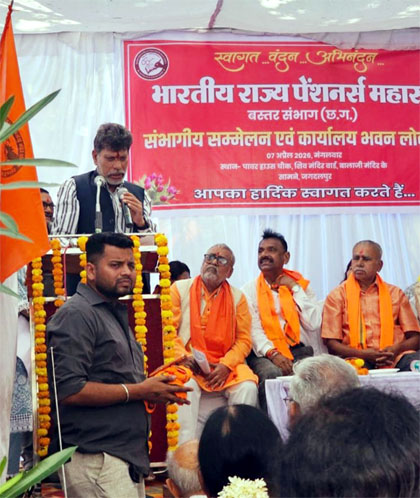 पेंशनर्स महासंघ के बस्तर संभागीय अध्यक्ष श्री आर.एन. ताटी ने अपने संबोधन में कहा कि महासंघ ने बस्तर संभाग के सुकमा, बीजापुर, दंतेवाड़ा, नारायणपुर, कोंडागांव, कांकेर और बस्तर जिलों में पेंशनरों के बीच अपनी सशक्त पहचान स्थापित की है। उन्होंने महासंघ को जगदलपुर में कार्यालय भवन उपलब्ध करवाने में सहयोग के लिए मुख्य अतिथि विधायक किरण सिंह देव का आभार व्यक्त किया और कहा कि यह कार्यालय भवन पेंशनरों के लिए परस्पर विचार-विमर्श और समस्याओं के समाधान का प्रमुख केंद्र बनेगा।