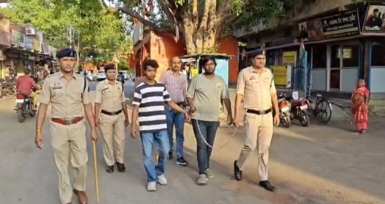 रायपुर, 10 अप्रैल (आरएनएस) राजधानी रायपुर के तेलीबांधा थाना क्षेत्र में हुए जानलेवा हमले के मामले में पुलिस ने त्वरित कार्रवाई करते हुए दो आरोपियों को गिरफ्तार कर लिया है। आरोपियों के कब्जे से घटना में प्रयुक्त एक्टिवा वाहन, दो मोबाइल फोन और एक चाकू बरामद किया गया है। साथ ही आरोपियों का जुलूस भी निकाला गया। उक्त कार्रवाई एंटी क्राइम एंड साइबर यूनिट और तेलीबांधा थाना पुलिस की संयुक्त टीम ने की।जानकारी के अनुसार, घटना 8 अप्रैल 2026 की है। प्रार्थिया सिमरन मिस्त्री अपने दोस्त गोविंद रोचलानी के साथ कटोरा तालाब जा रही थीं। इसी दौरान श्याम नगर इंदिरा चौक के पास स्कूटी सवार दो युवकों ने लापरवाही से वाहन चलाते हुए गाली-गलौज की। कुछ दूरी आगे बढऩे के बाद श्याम नगर हनुमान मंदिर के पास आरोपियों ने उनका रास्ता रोक लिया और विवाद शुरू कर दिया।विवाद के दौरान आरोपियों ने गाली देने से मना करने पर जान से मार देंगे कहकर गोविंद रोचलानी पर चाकू से हमला कर दिया, जिससे वह गंभीर रूप से घायल हो गया। घटना के बाद आरोपी मौके से फरार हो गए थे।मामले में तेलीबांधा थाना में अपराध दर्ज कर जांच शुरू की गई। पुलिस उपायुक्त (सेंट्रल जोन) और क्राइम एंड साइबर डीसीपी के निर्देश पर टीम ने सीसीटीवी फुटेज और तकनीकी साक्ष्यों के आधार पर आरोपियों की पहचान की।जांच में आरोपियों की पहचान न्यू राजेंद्र नगर निवासी अनुज सिंह और नवीन पैकरा के रूप में हुई। दोनों को गिरफ्तार कर पूछताछ की गई, जिसमें उन्होंने वारदात कबूल कर ली।पुलिस ने आरोपियों के खिलाफ भारतीय न्याय संहिता (बीएनएस) की धारा 109, 126(2), 296 और 3(5) के तहत मामला दर्ज कर आगे की कार्रवाई शुरू कर दी है।