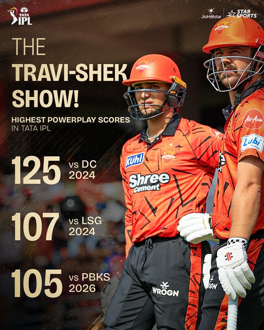 नईदिल्ली, 12 अपै्रल। सनराइजर्स हैदराबाद अपनी विस्फोटक बैटिंग के लिए जानी जाती है, और जब रिकॉर्ड तोडऩे की बात आती है, तो यह उन टीमों में से एक है जो ऐसा नियमित रूप से करती है. सनराइजर्स हैदराबाद के ओपनर्स अभिषेक शर्मा और ट्रैविस हेड ने शुक्रवार, 11 अप्रैल को न्यू चंडीगढ़ में पंजाब किंग्स के खिलाफ आईपीएल 2026 के मैच में एक और बड़ा कारनामा कर दिखाया.