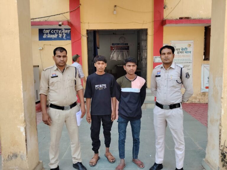 जांजगीर-चांपा,12 अप्रैल (आरएनएस)। थाना पामगढ़ पुलिस ने किराना दुकान में चोरी की वारदात का खुलासा करते हुए महज कुछ ही घंटों में दो आरोपियों को गिरफ्तार करने में सफलता हासिल की है।मिली जानकारी के अनुसार प्रार्थी हेमचंद रात्रे ने 12 अप्रैल 2026 को रिपोर्ट दर्ज कराई कि 11 अप्रैल की देर रात जब वह लघुशंका के लिए उठा, तब उसे अपनी दुकान की ओर से आवाज सुनाई दी। मौके पर जाकर देखा तो दुकान का दरवाजा खुला था और अंदर से गांव के ही कुछ युवक भागते हुए नजर आए। जांच करने पर गल्ले में रखे 4000 रुपये गायब मिले।रिपोर्ट दर्ज होते ही पामगढ़ पुलिस ने मामले को गंभीरता से लेते हुए त्वरित कार्रवाई की और संदेह के आधार पर आरोपियों की तलाश शुरू की। जल्द ही पुलिस ने विकास रात्रे (21 वर्ष) और अनुराग जोगी (19 वर्ष), दोनों निवासी बोरसी, को हिरासत में लिया। पूछताछ के दौरान आरोपियों ने चोरी करना स्वीकार कर लिया।पुलिस ने दोनों आरोपियों के खिलाफ भारतीय न्याय संहिता की धारा 303(2), 3(5) के तहत मामला दर्ज कर उन्हें न्यायिक रिमांड पर भेज दिया है।इस पूरी कार्रवाई में थाना प्रभारी निरीक्षक सावन सारथी, उप निरीक्षक कृष्ण कुमार साहू सहित पुलिस टीम का सराहनीय योगदान रहा।