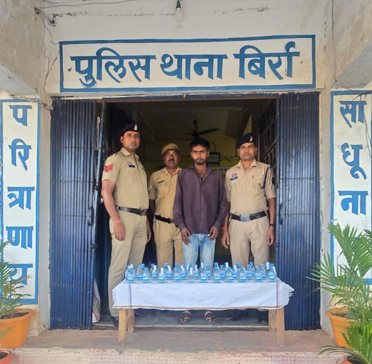 मिली जानकारी के अनुसार, पुलिस अधीक्षक श्रीमती निवेदिता पाल के निर्देशन, अतिरिक्त पुलिस अधीक्षक श्री उमेश कुमार कश्यप के मार्गदर्शन एवं एसडीओपी बिर्रा श्रीमती सतरूपा तारम के पर्यवेक्षण में थाना बिर्रा पुलिस ने मुखबिर की सूचना पर कार्रवाई की।कार्रवाई के दौरान पुलिस ने ग्राम पेण्ड्री निवासी 23 वर्षीय सुरेंद्र कश्यप को पकड़ा। उसके कब्जे से 35 पाव देशी प्लेन शराब, जिसकी कीमत लगभग 2800 रुपये बताई जा रही है, जब्त की गई।आरोपी के खिलाफ धारा 34(2) आबकारी एक्ट के तहत मामला दर्ज कर उसे गिरफ्तार कर न्यायिक रिमांड पर भेज दिया गया है।इस पूरी कार्रवाई में निरीक्षक जय कुमार साहू, सउनि तीज राम जांगड़े सहित पुलिस टीम के अन्य जवानों का सराहनीय योगदान रहा।