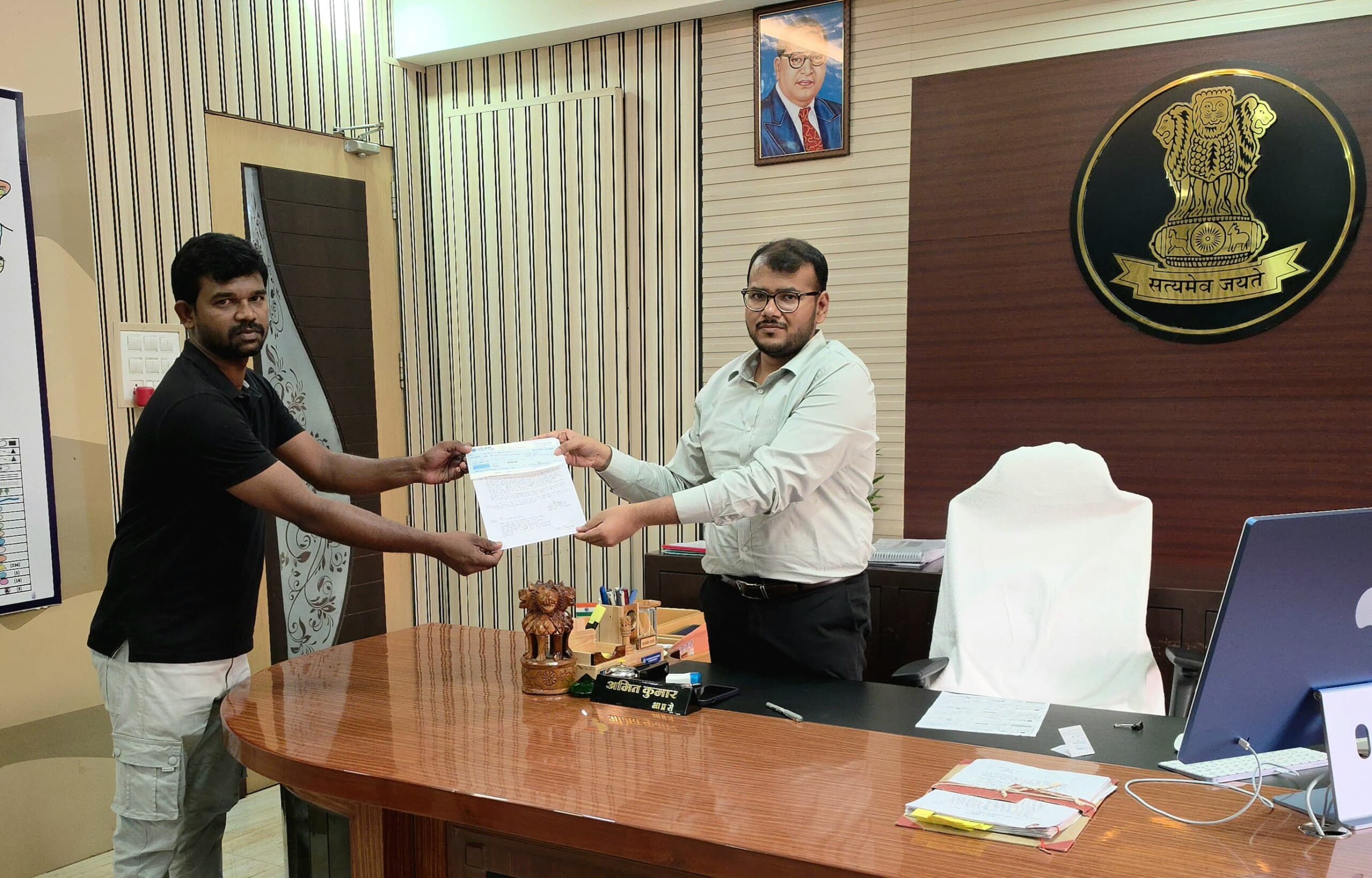० कलेक्टर अमित कुमार ने 3 युवाओं को स्वरोजगार हेतु दिए 2.76 लाख रुपये के अनुदान
