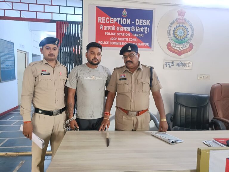 रायपुर, 17 अप्रैल 2026 (आरएनएस) —राजधानी में अपराधियों पर नकेल कसने की मुहिम के बीच रायपुर पुलिस कमिश्नरेट ने एक बार फिर बड़ी कार्रवाई करते हुए इलाके के कुख्यात बदमाश को हथियार के साथ दबोच लिया, थाना पण्डरी पुलिस को मुखबिर से सूचना मिली कि दलदलसिवनी स्थित वर्मा चिकन सेंटर के पास एक युवक अवैध रूप से धारदार चाकू लेकर घूम रहा है और किसी वारदात की फिराक में है, सूचना मिलते ही पुलिस टीम मौके पर पहुंची और घेराबंदी कर आरोपी सूरज चौरे पिता स्वर्गीय मनोज चौरे उम्र 28 वर्ष निवासी शिवाजी नगर द्वारिका विहार दलदलसिवनी को पकड़ लिया, तलाशी लेने पर उसके कब्जे से एक धारदार चाकू बरामद हुआ जिसे मौके पर ही जप्त कर लिया गया, पुलिस ने तुरंत आरोपी के खिलाफ अपराध क्रमांक 100/2026 के तहत आर्म्स एक्ट की धारा 25 में मामला दर्ज कर वैधानिक कार्रवाई शुरू कर दी, जांच में सामने आया कि आरोपी कोई सामान्य व्यक्ति नहीं बल्कि थाना पण्डरी क्षेत्र का घोषित गुंडा बदमाश है जिसके खिलाफ पहले से हत्या के प्रयास, मारपीट, आर्म्स एक्ट और एनडीपीएस एक्ट जैसे गंभीर मामलों में आधा दर्जन अपराध दर्ज हैं और वह कई बार जेल जा चुका है, उसके आपराधिक रिकॉर्ड में वर्ष 2017 से लेकर 2025 तक लगातार गंभीर धाराओं में केस दर्ज होना यह साफ करता है कि वह इलाके में सक्रिय अपराधी रहा है, पुलिस की इस त्वरित कार्रवाई ने संभावित बड़ी घटना को टाल दिया और यह भी संकेत दे दिया कि अब अपराधियों के लिए शहर में खुलकर घूमना आसान नहीं है।