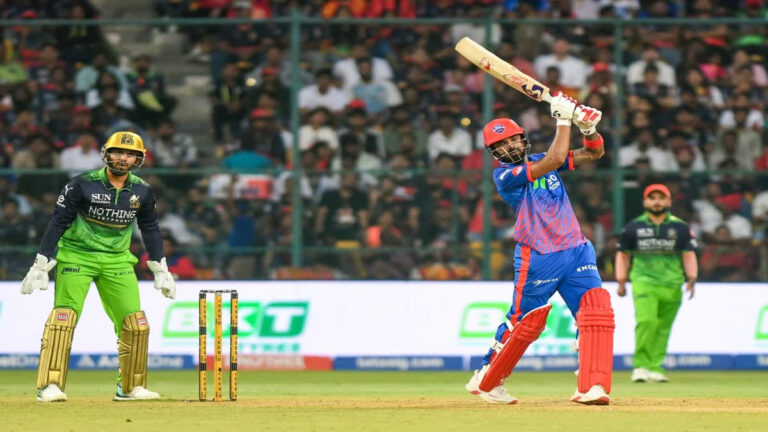 नईदिल्ली,19 अपै्रल। इंडियन प्रीमियर लीग 2026 के 26 वें मैच में दिल्ली कैपिटल्स ने रॉयल चैलेंजर्स बेंगलुरु (आरसीबी) को उसी के घर में 6 विकेट से मात दे दी. 176 रनों के लक्ष्य को दिल्ली ने केएल राहुल के 57 और ट्रिस्टन स्टब्स के 60 रनों की बदौलत आसानी से 20वें ओवर में ही चेज कर लिया. आखिरी ओवर में दिल्ली को जीत के लिए 15 रनों की जरूरत थी. आरसीबी ने उस ओवर में गेंद रोमारियो शेफर्ड को थमा दी. मिलर और स्टब्स ने पहली दो गेंद पर दो सिंगल लिए. फिर तीसरी और चौथी गेंद पर मिलर ने दो छक्के मारकर स्कोर को बराबर कर दिया और पांचवीं गेंद पर चौका मारकर टीम को जीत दिला दी.