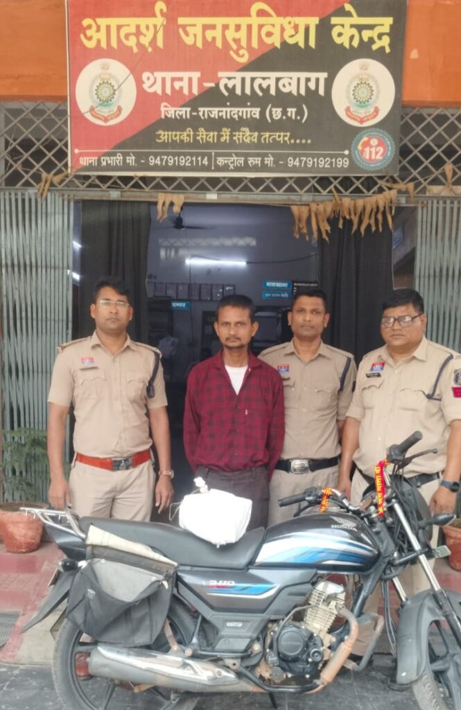 राजनांदगांव 19 अप्रैल (आरएनएस) लालबाग थाना क्षेत्र में अवैध शराब के कारोबार पर पुलिस ने ऐसा शिकंजा कसा कि अलग-अलग जगहों पर घेराबंदी कर एक साथ चार आरोपियों को दबोच लिया गया, 18 और 19 अप्रैल 2026 को मुखबिर की सटीक सूचना पर एक्टिव हुई पुलिस टीम ने लगातार रेड कार्रवाई करते हुए शराब की खेप को पकड़ लिया, इस पूरी कार्रवाई में कुल 103 पाव आइकॉन प्रीमियम व्हिस्की अंग्रेजी शराब बरामद हुई जिसकी मात्रा 18.54 बल्क लीटर और कीमत करीब 12,360 रुपये आंकी गई, साथ ही तस्करी में इस्तेमाल एक मोटरसाइकिल भी जब्त की गई जिसकी कीमत लगभग 50,000 रुपये है, कुल मिलाकर 62,360 रुपये की संपत्ति पुलिस के कब्जे में आई, पुलिस ने चारों आरोपियों—भगवत प्रसाद तिवारी उम्र 56 वर्ष निवासी ग्राम कोहका, संतु सिंह उम्र 45 वर्ष निवासी मोतीपुर, चेतन वर्मा उम्र 36 वर्ष निवासी सिवनी खुर्द और नरेंद्र यादव उम्र 34 वर्ष निवासी लखोली—को अलग-अलग स्थानों से घेराबंदी कर पकड़ा, जांच में सामने आया कि ये सभी आरोपी अवैध रूप से शराब का परिवहन कर बिक्री के लिए ले जा रहे थे, थाना लालबाग में दर्ज अलग-अलग अपराध क्रमांकों के तहत 03 आरोपियों पर धारा 34(1) और 01 आरोपी पर धारा 34(2) आबकारी अधिनियम के तहत मामला दर्ज कर कार्रवाई की गई, तीन आरोपियों का अपराध जमानती होने के कारण उन्हें जमानत मुचलका पर रिहा किया गया जबकि एक आरोपी को न्यायिक रिमांड पर जेल भेज दिया गया, यह पूरी कार्रवाई पुलिस अधीक्षक अंकिता शर्मा के निर्देश, अतिरिक्त पुलिस अधीक्षक कीर्तन राठौर के मार्गदर्शन और नगर पुलिस अधीक्षक वैशाली जैन के पर्यवेक्षण में थाना प्रभारी रमेश पटेल और उनकी टीम द्वारा अंजाम दी गई, जिसमें एएसआई अश्वनी यदु, शोभाराम बेरवंशी, महिला प्रधान आरक्षक कल्पना अंबादे, आरक्षक राकेश धुर्वे और कमल किशोर यादव की अहम भूमिका रही, पुलिस ने साफ संकेत दिया है कि क्षेत्र में अवैध शराब के कारोबार को किसी भी कीमत पर बर्दाश्त नहीं किया जाएगा और यह अभियान लगातार जारी रहेगा—क्योंकि कानून से बचकर कोई नहीं निकल सकता।