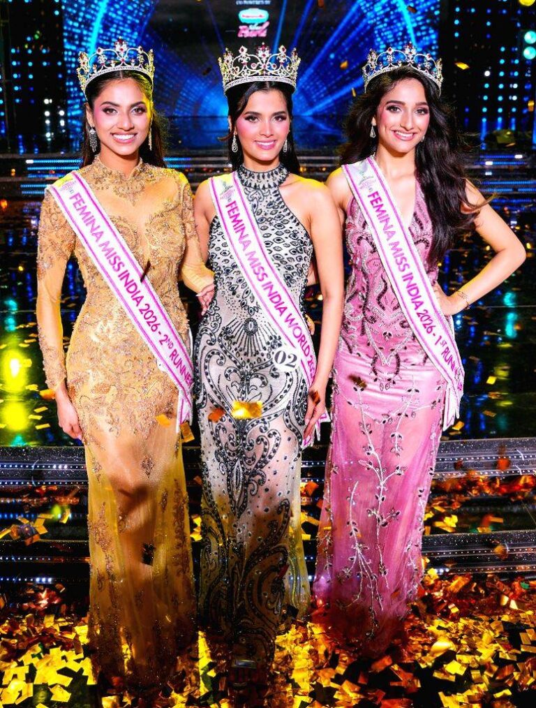 मिस इंडिया 2026 के फाइनल में फर्स्ट रनरअप राजनंदिनी पवार और सेकंड रनरअप डॉ. श्री अद्वैता बनी हैं।