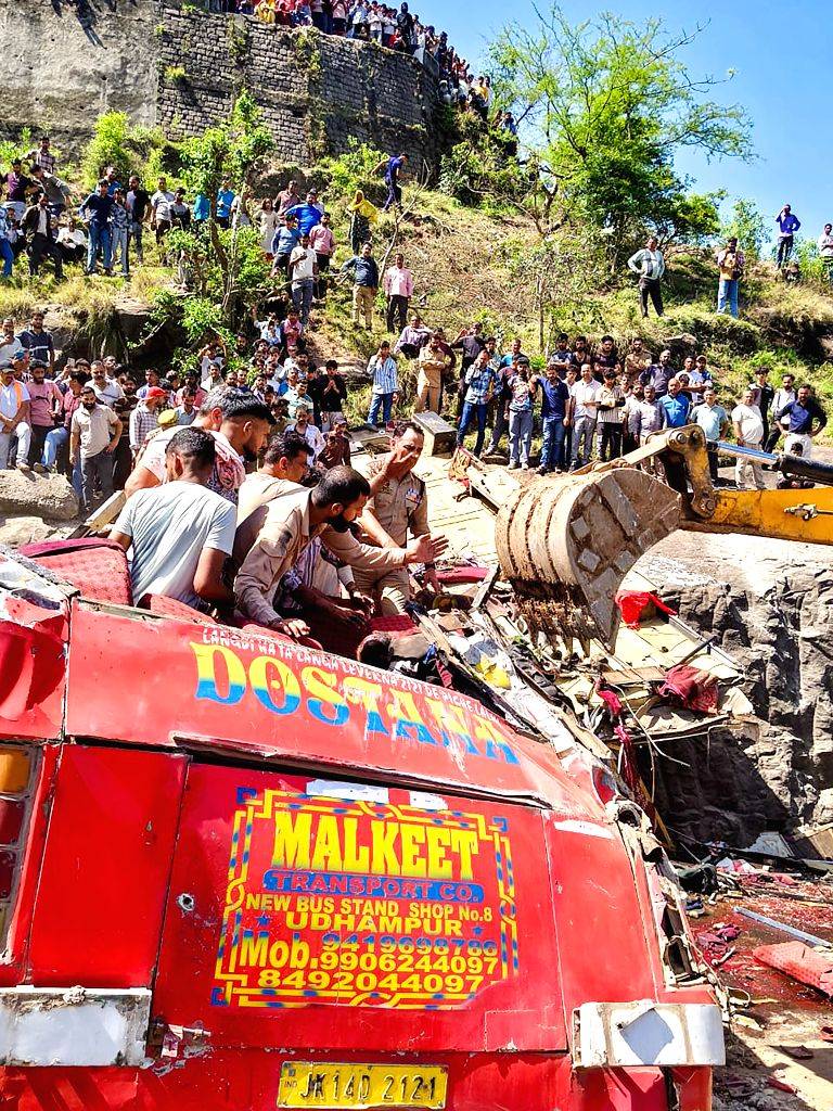अधिकारियों ने बताया कि सुबह करीब 10 बजे राम नगर क्षेत्र में पहाड़ी सड़क पर एक खतरनाक मोड़ पर बस दुर्घटनाग्रस्त हो गई। स्थानीय लोग सबसे पहले घटनास्थल पर पहुंचे और बचाव कार्य शुरू करते हुए मलबे से घायलों को बाहर निकाला। इसके तुरंत बाद पुलिस और अन्य आपातकालीन दल भी मौके पर पहुंच गए और पीडि़तों को सुरक्षित निकालने तथा स्थल को खाली कराने का अभियान तेज कर दिया। अधिकारियों ने बताया कि दुर्घटना उस समय हुई जब बस दूर-दराज के एक गांव से उधमपुर जा रही थी।