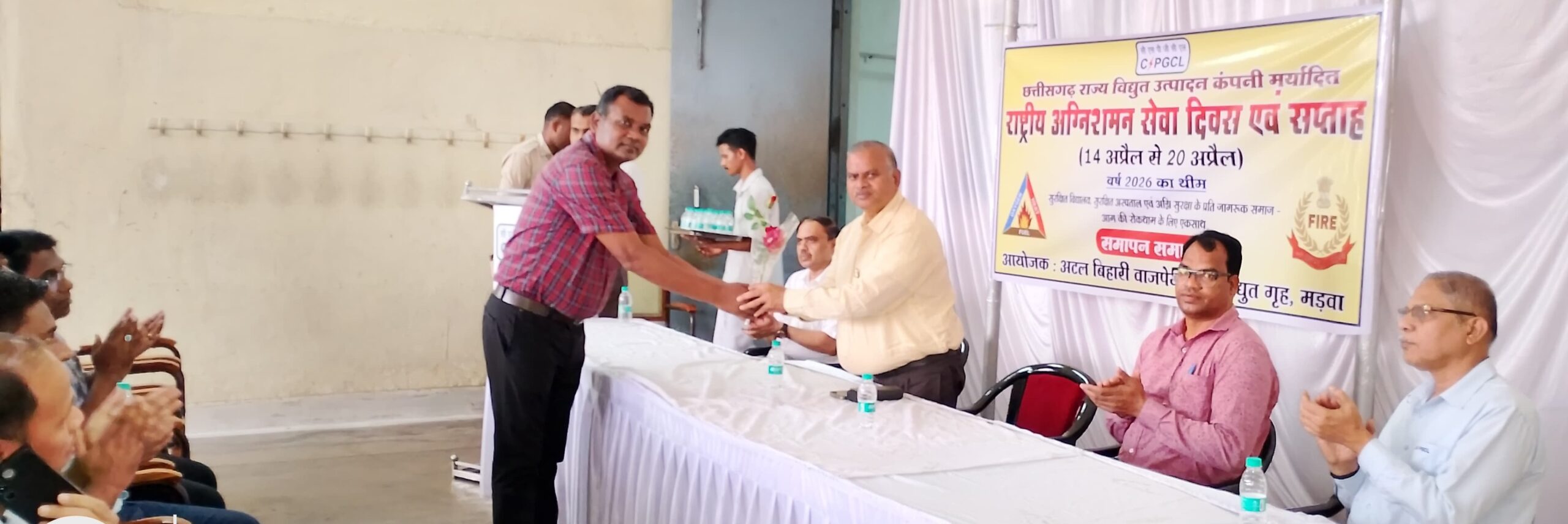कोरबा-जांजगीर 22 अप्रैल (आरएनएस)। विद्युत संयंत्र में कार्यरत सभी कर्मचारियों एवं श्रमिकों को अग्निशमन उपकरणों का उपयोग सीखना चाहिए। इससे अग्नि दुर्घटनाओं को रोकने में ज्यादा मदद मिलेगी। यह विचार अग्निशमन सेवा सप्ताह के पुरस्कार वितरण समारोह में मुख्य अभियंता श्री एचएन. कोसरिया ने व्यक्त किए। अटल बिहारी वाजपेयी ताप विद्युत संयंत्र (एबीवीटीपीएस) मड़वा में 14 से 20 अप्रैल 2026 को अग्निशमन सेवा सप्ताह मनाया गया।