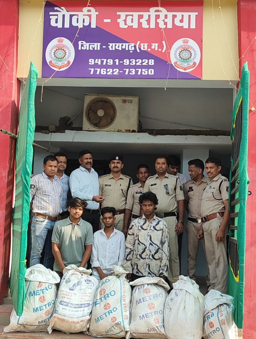 रायगढ़ 23 अप्रैल (आरएनएस) नशे के काले कारोबार पर रायगढ़ पुलिस ने ऐसा वार किया कि ट्रेन से बचकर भागने की फिराक में उतरे तस्कर सीधे गिरफ्त में आ गए और 52 किलो गांजा के साथ पूरा नेटवर्क बेनकाब हो गया, 22 अप्रैल की इस कार्रवाई ने “ऑपरेशन आघात” को लगातार तीसरी बड़ी सफलता दिलाई, 23 अप्रैल को सामने आई इस कार्रवाई में खरसिया रेलवे कॉलोनी के पास तीन संदिग्ध युवकों की गतिविधियों ने पुलिस को सतर्क किया, मुखबिर की सटीक सूचना थी कि ओडिशा से ट्रेन के जरिए गांजा लाया जा रहा है और रेलवे चेकिंग के डर से आरोपी बीच रास्ते में उतरकर ग्राहकों तक माल पहुंचाने की फिराक में हैं, एसएसपी शशि मोहन सिंह के निर्देश पर पहले से अलर्ट साइबर टीम, चौकी खरसिया और रेलवे पुलिस ने इलाके की घेराबंदी की, चौकी प्रभारी त्रिनाथ त्रिपाठी के नेतृत्व में टीम ने जैसे ही तीनों को बैग के साथ घूमते देखा, तुरंत दबोच लिया, पूछताछ में आरोपियों ने अपनी पहचान दिनेश कुमार बेहरा पिता लिंगराज बेहरा उम्र 22 वर्ष ग्राम कत्रिंगया थाना गोछापड़ा जिला कंधमाल (ओडिशा), शिवा बेहरा पिता राहुल बेहरा उम्र 21 वर्ष निवासी डडकी थाना सदर जिला कंधमाल (ओडिशा) और देवी प्रसाद कंहर पिता बंशीधर कंहर उम्र 19 वर्ष निवासी सीगाकेता थाना गोछापड़ा जिला कंधमाल (ओडिशा) के रूप में बताई और कबूल किया कि वे ट्रेन से गांजा लेकर आए थे लेकिन चेकिंग के डर से खरसिया में उतर गए थे, तलाशी में तीनों के बैग से क्रमशः 16.1 किलो, 20.4 किलो और 15.5 किलो गांजा बरामद हुआ, कुल वजन 52 किलोग्राम निकला जिसकी कीमत करीब 25 लाख 62 हजार रुपये आंकी गई, तुरंत चौकी खरसिया में अपराध क्रमांक 189/2026 के तहत धारा 20(B) एनडीपीएस एक्ट में केस दर्ज कर आरोपियों को न्यायिक रिमांड पर भेज दिया गया, इस पूरी कार्रवाई में एडिशनल एसपी अनिल सोनी का मार्गदर्शन, साइबर डीएसपी उन्नति ठाकुर और एसडीओपी प्रभात पटेल का नेतृत्व रहा जबकि रेलवे सुरक्षा बल और साइबर थाना की टीम ने तकनीकी निगरानी और फील्ड एक्शन में अहम भूमिका निभाई, इससे पहले इसी सप्ताह तमनार से 60 किलो और चक्रधरनगर से 36 किलो गांजा जब्त कर पुलिस पहले ही नेटवर्क की कमर तोड़ चुकी है, लगातार तीन बड़े प्रहार यह साफ संकेत दे रहे हैं कि रायगढ़ पुलिस अब तस्करी के हर लिंक—सप्लाई से लेकर डिलीवरी तक—एंड टू एंड कार्रवाई कर रही है, एसएसपी शशि मोहन सिंह का साफ संदेश है कि नशे के कारोबार पर जीरो टॉलरेंस है और इसमें शामिल किसी भी व्यक्ति को बख्शा नहीं जाएगा, आम लोगों से भी अपील की गई है कि ऐसी किसी भी गतिविधि की सूचना तुरंत दें, पहचान पूरी तरह गोपनीय रखी जाएगी,