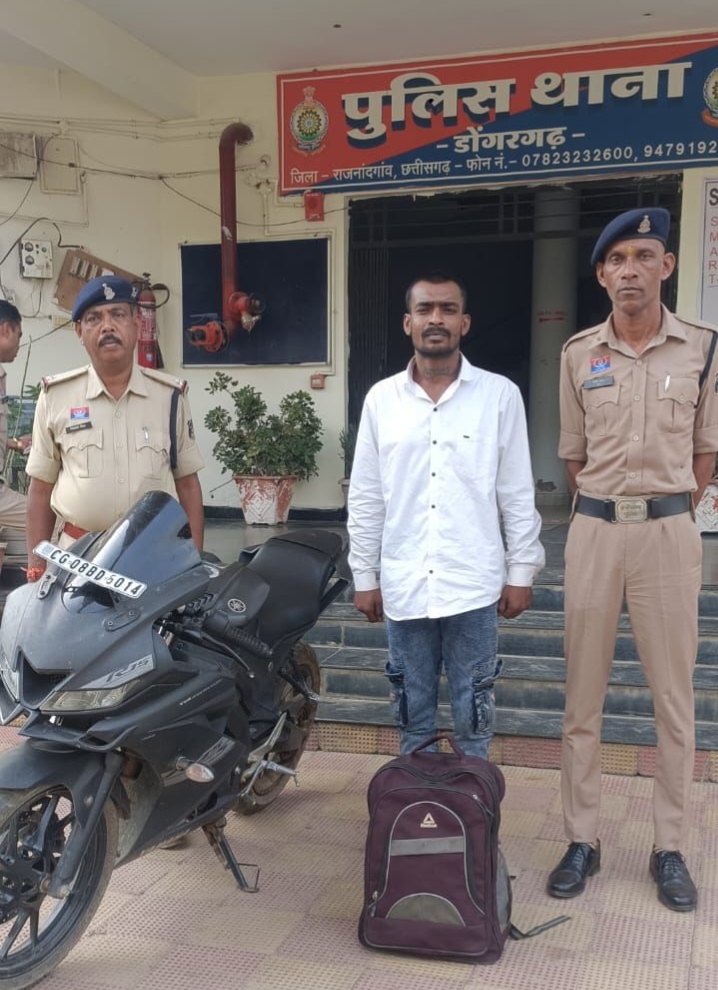 राजनांदगांव 24 अप्रैल (आरएनएस)डोंगरगढ़ में नशे के कारोबार पर पुलिस ने ऐसा वार किया कि लंबे समय से सक्रिय हिस्ट्रीशीटर आखिरकार जाल में फंस गया, 23 अप्रैल 2026 को मुखबिर की सटीक सूचना पर जेल रोड चौथान मोड़ के पास पुलिस टीम ने घेराबंदी की और मोटरसाइकिल क्रमांक CG 08 BD 5014 पर सवार दो संदिग्धों को रोकते ही बड़ा खुलासा हुआ, बाइक पर सवार मोहित उर्फ मोंटू मालेकर (35) निवासी जेल रोड वार्ड नंबर 21 और उसके साथ एक 16 वर्षीय विधि से संघर्षरत बालक गांजा की खेप लेकर जा रहे थे, तलाशी में 5.610 किलोग्राम गांजा बरामद हुआ जिसकी कीमत करीब 1 लाख रुपये आंकी गई जबकि बाइक की कीमत 1.5 लाख रुपये बताई गई, कुल मिलाकर 2.5 लाख की जप्ती ने पूरे नेटवर्क की गंभीरता उजागर कर दी, पुलिस अधीक्षक अंकिता शर्मा के निर्देश और अतिरिक्त पुलिस अधीक्षक कीर्तन राठौर व एसडीओपी केशरी नंदन नायक के मार्गदर्शन में थाना प्रभारी (प्रशिक्षु डीएसपी) सुमन जायसवाल और निरीक्षक संतोष जायसवाल की टीम पहले से ही इलाके में सक्रिय थी, जैसे ही इनपुट मिला तुरंत घेराबंदी की गई और बिना मौका दिए आरोपियों को दबोच लिया गया, पूछताछ में सामने आया कि मुख्य आरोपी मोहित उर्फ मोंटू मालेकर कोई साधारण नाम नहीं बल्कि अपराध की दुनिया का पुराना खिलाड़ी है जिसके खिलाफ पहले से 10 गंभीर मामले दर्ज हैं जिनमें आर्म्स एक्ट, लूट, चोरी, मारपीट और NDPS जैसे अपराध शामिल हैं, पुलिस ने मौके पर ही NDPS एक्ट की धारा 20(बी) के तहत मामला दर्ज कर दोनों को गिरफ्तार कर न्यायालय में पेश कर दिया, पूरी कार्रवाई में पुलिस टीम के जवानों की सतर्कता और रणनीति साफ नजर आई जिन्होंने एक बार फिर साबित कर दिया कि नशे के कारोबार पर अब सख्त शिकंजा कस चुका है, बहरहाल यह गिरफ्तारी एक बड़ा संकेत है—डोंगरगढ़ में अब अपराध की हर चाल पर पुलिस की नजर है
