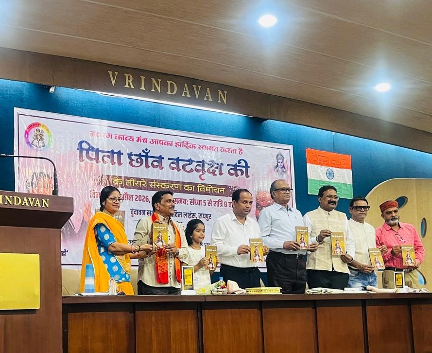 रायपुर, 24 अप्रैल (आरएनएस)। विश्व पुस्तक दिवस के अवसर पर कल 23 अप्रैल को राजधानी रायपुर में आयोजित कार्यक्रम में स्थानीय कवि राजेश जैन ‘राही ‘ की काव्य -कृति पिता छाँव वट वृक्ष की के तीसरे संस्करण का विमोचन किया गया। वृन्दावन हॉल, सिविल लाइन में यह आयोजन नवरंग काव्य मंच ने किया। मुख्य अतिथि रायपुर के कलेक्टर गौरव कुमार सिंह, मुख्य वक्ता साहित्यकार डॉ. माणिक विश्वकर्मा ‘नवरंगÓ , एम.राजीव, वरिष्ठ पत्रकार डॉ. अनिल द्विवेदी और रंगकर्मी आचार्य रंजन मोड़क ने संयुक्त रूप से इस काव्य -कृति का विमोचन किया ।