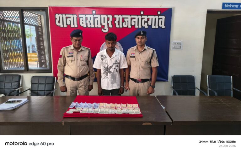 राजनांदगांव 24 अप्रैल (आरएनएस) बसंतपुर इलाके में ताला बंद घर को निशाना बनाकर लाखों की चोरी करने वाले गैंग का आखिरी फरार खिलाड़ी आखिरकार पुलिस के शिकंजे में आ गया, 4 मार्च 2026 को नंदई चौक निवासी वतन सिंह राजपूत अपने परिवार के साथ मोहला गए हुए थे और पीछे से घर सूना पड़ा था, इसी मौके का फायदा उठाकर आरोपियों ने घर में घुसकर आलमारी तोड़ी और सोने के आभूषण, मोबाइल और कीमती सामान पार कर दिया, घटना सामने आते ही थाना बसंतपुर में अपराध क्रमांक 110/2026 दर्ज हुआ और पुलिस ने ताबड़तोड़ जांच शुरू की, पहले ही चरण में शंकर रजक उर्फ बंठा, निखिल ढीमर उर्फ निक्कु, आलोक भोजपुरी और सुरेश ढीमर उर्फ सुरजू को गिरफ्तार कर उनके कब्जे से करीब 5 लाख 72 हजार 604 रुपये के सोने के जेवरात बरामद किए गए, लेकिन इस गैंग का एक सदस्य प्रेमदास मानिकपुरी उर्फ डबका (22 वर्ष) निवासी ढीमरपारा घटना के बाद से फरार चल रहा था, पुलिस लगातार उसकी तलाश में जुटी थी और आखिरकार मुखबिर से मिली सटीक सूचना पर राजनांदगांव शहर में उसकी लोकेशन मिली, बिना देर किए टीम ने घेराबंदी कर उसे पकड़ लिया, पूछताछ में उसने अपने साथियों के साथ मिलकर नकबजनी की पूरी साजिश कबूल कर ली, उसके कब्जे से 8 हजार रुपये नगद और वारदात में इस्तेमाल की गई स्कूटी बरामद की गई, पुलिस ने आरोपी पर भारतीय न्याय संहिता की धारा 317(2), 111 और 3(5) के तहत कार्रवाई करते हुए उसे न्यायिक अभिरक्षा में जेल भेज दिया, इस पूरी कार्रवाई में थाना प्रभारी निरीक्षक एमन साहू और उनकी टीम की सतर्कता और रणनीति साफ नजर आई जिन्होंने एक-एक कर पूरे गैंग को सलाखों के पीछे पहुंचा दिया, बहरहाल यह मामला साफ संकेत देता है कि सूने घर पर नजर रखने वाले अब खुद पुलिस की नजर में हैं और बचना अब नामुमकिन होता जा रहा है।