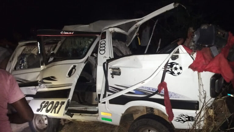 भंडारा (महाराष्ट्र),24 अपै्रल (आरएनएस)। जिले के पवनी तालुका के अड्याल गांव के पास गुरुवार 23 अप्रैल की देर रात को बारातियों को ले जा रही मारुति ओमनी वैन और एक ट्रक के बीच हुए टक्कर में दूल्हे के मामा-मामी सहित पांच लोगों की मौके पर ही मौत हो गई. चार अन्य गंभीर रूप से घायल हैं. घायलों को इलाज के लिए जिला हॉस्पिटल में भर्ती कराया गया है.