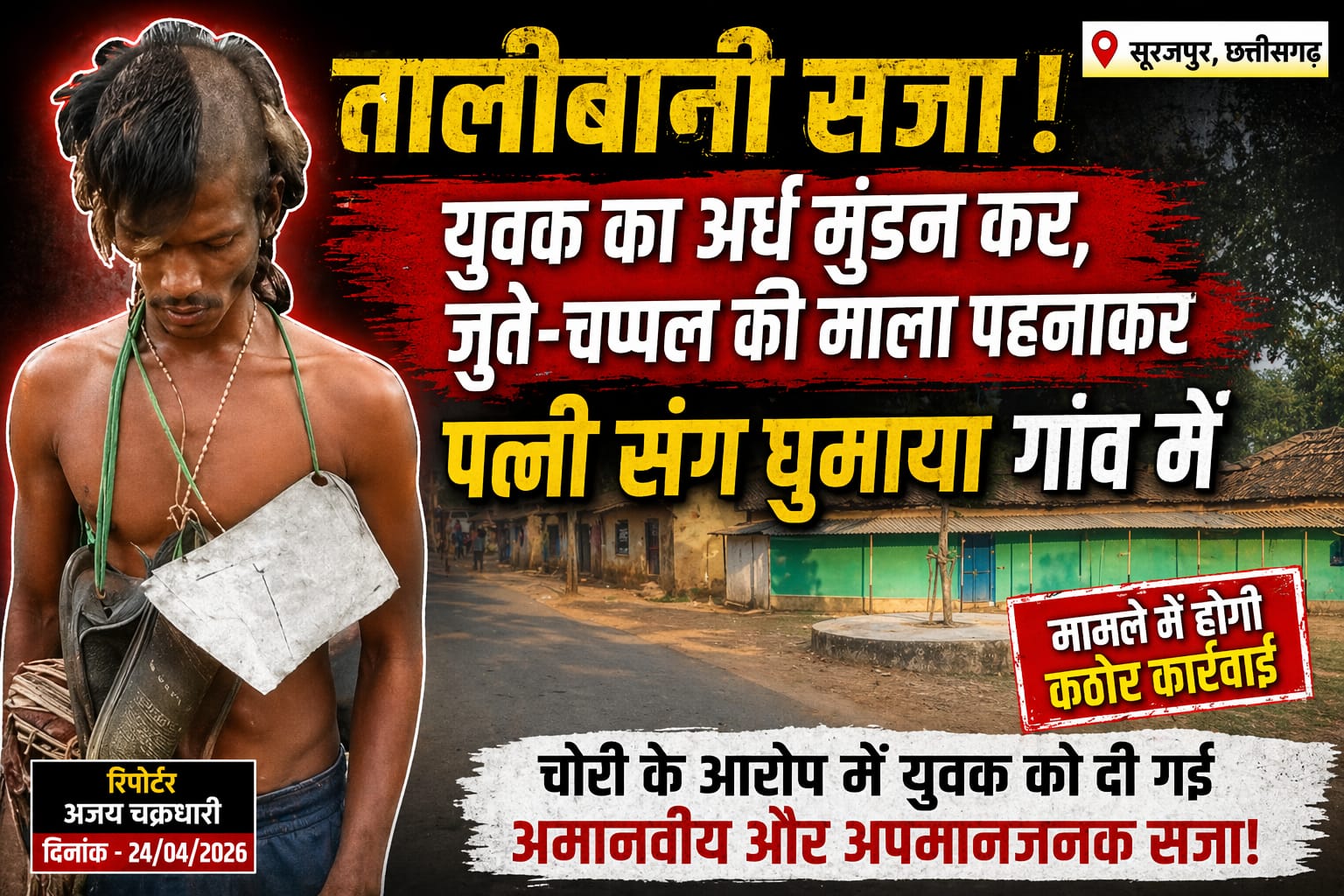 रामानुजनगर 24 अप्रैल (आरएनएस) छत्तीसगढ़ के रामानुजनगर थाना क्षेत्र के पस्ता गांव से सामने आई यह घटना रोंगटे खड़े कर देती है जहां एक युवक मोहम्मद रहमान ताज को चोरी के शक में ऐसी सजा दी गई जिसने कानून और इंसानियत दोनों को कटघरे में खड़ा कर दिया, आरोप है कि गांव के सरपंच पति और कुछ ग्रामीणों ने मिलकर युवक का आधा सिर मुंडवाया, गले में जूते-चप्पलों की माला पहनाई और फिर मारपीट करते हुए पूरे गांव में घुमाया, यह सब कुछ खुलेआम हुआ और किसी ने रोकने की हिम्मत नहीं दिखाई, हैरानी की बात यह है कि इस कथित सजा में युवक की पत्नी को भी नहीं बख्शा गया और उसे भी अपमान का सामना करना पड़ा, पीड़ित परिवार का दावा है कि उन पर लगाया गया चोरी का आरोप झूठा है और उनके साथ साजिश के तहत यह बर्बरता की गई, वहीं पुलिस का कहना है कि युवक संदिग्ध हालत में गांव पहुंचा था और पूरे मामले की गंभीरता से जांच की जा रही है, अब सबसे बड़ा सवाल यही है कि क्या गांवों में कानून की जगह भीड़ का फैसला चलने लगा है और क्या कोई भी व्यक्ति बिना सबूत के इस तरह की सजा देने का हकदार हो सकता है, यह घटना न केवल कानून व्यवस्था पर सवाल उठाती है बल्कि समाज के उस खतरनाक चेहरे को भी उजागर करती है जहां शक के आधार पर इंसानियत को कुचल दिया जाता है, बहरहाल यह मामला एक चेतावनी है कि अगर ऐसे कृत्यों पर सख्त कार्रवाई नहीं हुई तो भीड़तंत्र का यह खौफनाक चेहरा किसी के भी साथ दोहराया जा सकता है।