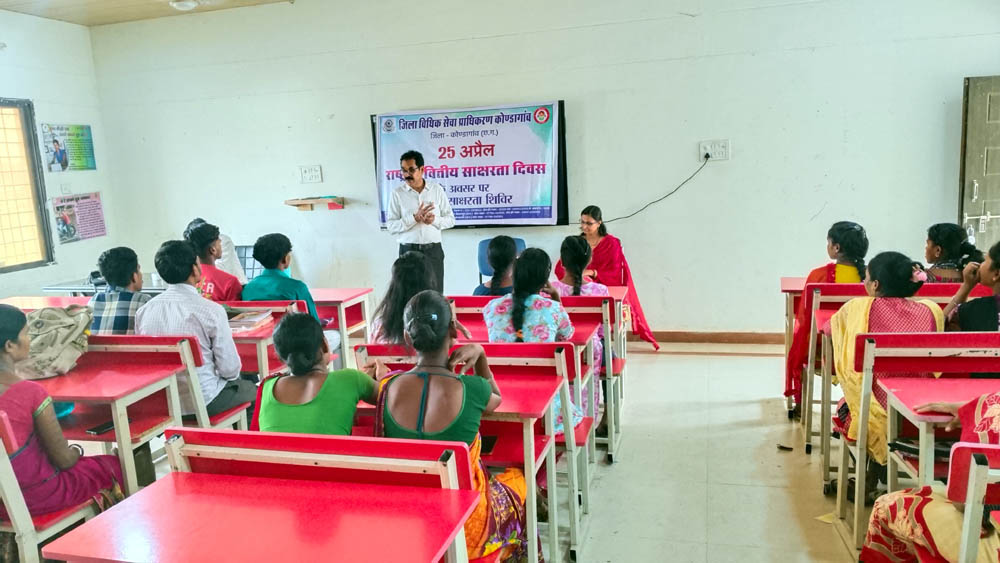 कोण्डागांव, 25 अप्रैल (आरएनएस)। राष्ट्रीय वित्तीय साक्षरता दिवस के अवसर पर प्रधान जिला एवं सत्र न्यायाधीश/अध्यक्ष जिला विधिक सेवा प्राधिकरण कोण्डागांव खिलावन राम रिगरी के मार्गदर्शन में सचिव जिला विधिक सेवा प्राधिकरण कोण्डागांव कु0 गायत्री साय के नेतृत्व में सुरेन्द्र भट्ट प्रतिधारक अधिवक्ता एवं अधिकार मित्र रंजन बैध, लोकेश यादव के द्वारा लाईवलीहुड कॉलेज कोण्डागांव में विधिक जागरूकता कार्यक्रम का किया आयोजन।