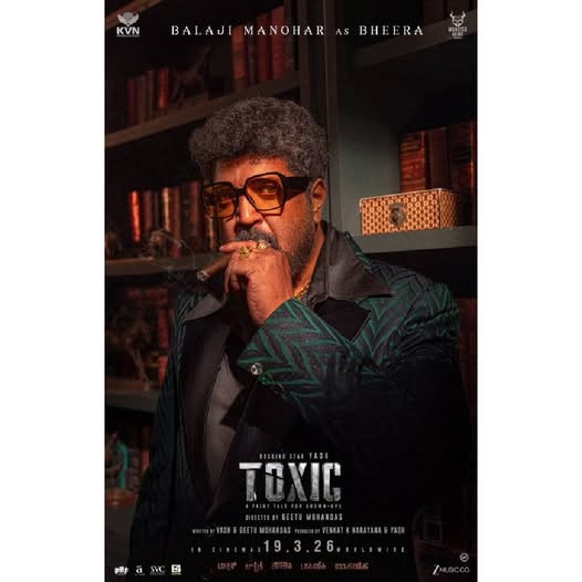 यश ने आज अपनी फिल्म टॉक्सिक: ए फेयरी टेल फॉर ग्रोन-अप्स का एक और दिलचस्प पोस्टर शेयर किया है, जिसमें अभिनेता बालाजी मनोहर नजर आ रहे हैं। इस फिल्म में वह भीरा के किरदार में नजर आएंगे। फिल्म के इस पोस्टर में बालाजी मनोहर हाथ में सिगार लिए और ब्लैक चश्मे में स्टाइलिश अंदाज में नजर आ रहे हैं। इस पोस्टर ने फिल्म के लिए फैंस की उत्सुकता को और अधिक बढ़ा दिया है।