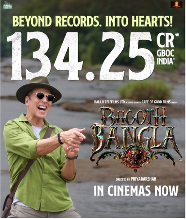 इसी के साथ भूत बंगला ने अक्षय कुमार की हिट फिल्म टॉयलेट- एक प्रेम कथा और राउडी राठौर के लाइफटाइम कलेक्शन को पीछे छोड़ दिया है. मीडिया रिपोर्ट्स के मुताबिक 2017 में आई टॉयलेट- एक प्रेम कथा ने 134.22 करोड़ का लाइफटाइम कलेक्शन किया था, जबकि राउडी राठौर का लाइफटाइम कलेक्शन 133.25 करोड़ रुपये था.