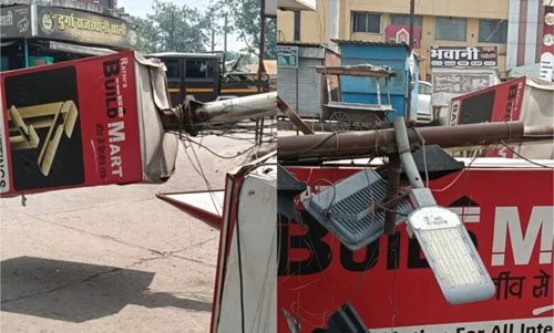 जोरदार टक्कर से गिरा सिग्नल खंभा