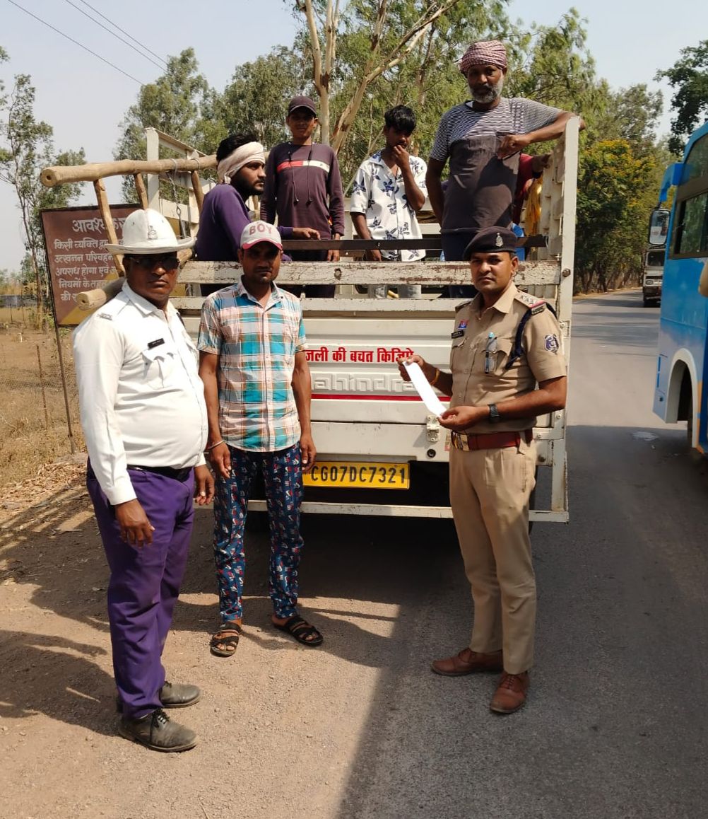 दुर्ग 27 अप्रैल (आरएनएस) शादी सीजन के बीच जान जोखिम में डालकर ट्रक और पिकअप में सफर करने वालों पर अब सख्ती का पहिया घूम गया है और यातायात पुलिस ने विशेष अभियान चलाकर मालवाहक वाहनों में सवारी ढोने वालों के खिलाफ ताबड़तोड़ चालानी कार्रवाई शुरू कर दी है, 27 अप्रैल 2026 को जारी इस अभियान में शहर से लेकर राष्ट्रीय और राज्य मार्गों तक सघन चेकिंग की जा रही है जहां ट्रक, पिकअप और अन्य मालवाहक वाहनों में अवैध रूप से यात्रियों को ले जाते पाए जाने पर मोटर व्हीकल एक्ट के तहत सीधे कार्रवाई हो रही है, दरअसल अन्य जिलों में ऐसी लापरवाही से हुई दर्दनाक दुर्घटनाओं और जनहानि को देखते हुए दुर्ग पुलिस ने पहले ही अलर्ट मोड में आकर यह अभियान तेज किया है ताकि किसी भी बड़ी घटना से पहले ही खतरे को रोका जा सके, चेकिंग के दौरान सिर्फ चालकों पर कार्रवाई ही नहीं बल्कि यात्रियों को भी समझाइश दी जा रही है कि वे केवल अधिकृत यात्री वाहनों का ही उपयोग करें, इसी के साथ सड़क सुरक्षा को मजबूत करने के लिए ब्रेथ एनालाइजर के जरिए ड्रंक एंड ड्राइव के मामलों पर भी कड़ी नजर रखी जा रही है और शराब पीकर वाहन चलाने वालों के खिलाफ वैधानिक कार्रवाई के साथ जरूरत पड़ने पर न्यायालयीन प्रक्रिया भी अपनाई जा रही है, यातायात पुलिस दुर्ग के अधिकारी और कर्मचारी लगातार मैदान में उतरकर चेकिंग, प्रवर्तन और जनजागरूकता का संयुक्त अभियान चला रहे हैं जिससे सड़क सुरक्षा को लेकर बड़ा असर देखने को मिल रहा है, पुलिस ने आम नागरिकों और वाहन चालकों से साफ अपील की है कि मालवाहक वाहनों में यात्रा न करें, नियमों का पालन करें और शराब पीकर वाहन चलाने से बचें ताकि खुद की और दूसरों की जिंदगी सुरक्षित रह सके, बहरहाल, यह अभियान सिर्फ चालान तक सीमित नहीं बल्कि हर उस जान को बचाने की कोशिश है जो एक छोटी सी लापरवाही से हमेशा के लिए खत्म हो सकती है।