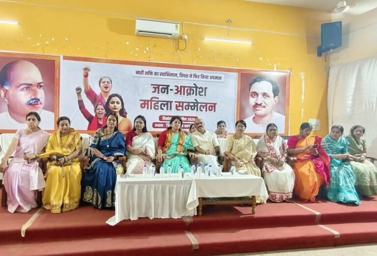दुर्ग 27 अप्रैल (आरएनएस) नारी शक्ति वंदन अधिनियम को लेकर सियासत उस वक्त गरमा गई जब भाजपा महिला मोर्चा ने विपक्ष के विरोध पर खुला हमला बोलते हुए जोरदार आक्रोश सम्मेलन किया और इसके बाद रैली निकालकर पुराने बस स्टैंड पर कांग्रेस सहित इंडी गठबंधन का पुतला दहन कर विरोध दर्ज कराया, भाजपा कार्यालय में आयोजित इस कार्यक्रम में छत्तीसगढ़ बाल संरक्षण आयोग की अध्यक्ष वर्णिका शर्मा मुख्य वक्ता के रूप में मौजूद रहीं जहां उन्होंने सीधे आरोप लगाया कि कांग्रेस ने महिला आरक्षण का विरोध कर देश की महिलाओं का अपमान किया है और महिलाएं इसे कभी नहीं भूलेंगी, उन्होंने कहा कि जब भी महिलाओं के अधिकारों की बात आई कांग्रेस ने हमेशा उन्हें पीछे धकेलने का काम किया और आज भी वह नहीं चाहती कि मातृशक्ति नेतृत्व की भूमिका में आए, कार्यक्रम में जिला भाजपा अध्यक्ष सुरेंद्र कौशिक, जिला पंचायत अध्यक्ष सरस्वती बंजारे, महापौर अलका बाघमार, भाजपा प्रदेश कार्यसमिति सदस्य चंद्रिका चंद्राकर, उषा टावरी, जिला उपाध्यक्ष हर्षा चंद्राकर, सरिता मिश्रा, महिला मोर्चा प्रदेश मंत्री कुमुद बघेल, जिलाध्यक्ष तृप्ति चंद्राकर, जनपद पंचायत अध्यक्ष कुलेश्वरी देवांगन, कीर्ति नायक और सरस्वती साहू सहित कई प्रमुख नेता मंच पर मौजूद रहे, सुरेंद्र कौशिक ने कहा कि केंद्र सरकार द्वारा लाए गए नारी शक्ति वंदन अधिनियम से देशभर की महिलाओं में उत्साह था लेकिन कांग्रेस ने इसे रोकने के लिए मनगढ़ंत तर्क और कुटिल सोच का सहारा लिया, वहीं महापौर अलका बाघमार और तृप्ति चंद्राकर ने भी सम्मेलन को संबोधित करते हुए विपक्ष पर तीखा हमला बोला, कार्यक्रम के बाद महिला मोर्चा की कार्यकर्ताओं ने रैली निकालते हुए पुराने बस स्टैंड पहुंचकर विपक्षी दलों का पुतला जलाया और जोरदार नारेबाजी की, पूरे आयोजन में जिला और मंडल स्तर के पदाधिकारी, कार्यसमिति सदस्य और बड़ी संख्या में महिला कार्यकर्ता मौजूद रहीं, कार्यक्रम का संचालन ममता राव ने किया और आभार डॉ. भारती साहू ने व्यक्त किया, बहरहाल, यह आक्रोश सिर्फ एक कार्यक्रम नहीं बल्कि आने वाले दिनों में महिला मुद्दों पर तेज होने वाली सियासी टकराव की साफ आहट भी है।