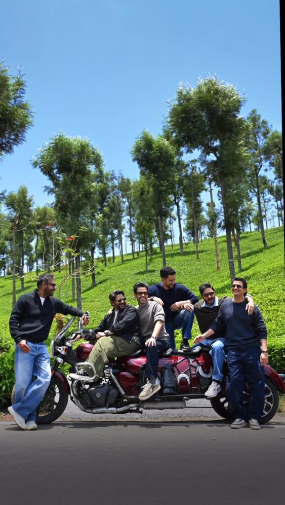 अजय ने अरशद, तुषार, शरमन, श्रेयस और कुणाल के साथ अपनी एक तस्वीर भी पोस्ट की है. इस तस्वीर में ये सभी एक्टर उस मशहूर पांच-सीटर बाइक के साथ पोज देते नजर आ रहे हैं, जो इस फिल्म फ्रेंचाइजी का एक अहम हिस्सा रही है. अजय ने इंस्टाग्राम इस मजेदार वीडियो मोंटाज शेयर करते हुए कैप्शन में लिखा है, इस बार सवारी बड़ी है, और एंटरटेनमेंट उससे भी ज्यादा बड़ा होगा. गोलमाल 5 का ऊटी शेड्यूल, लड़कों के साथ.