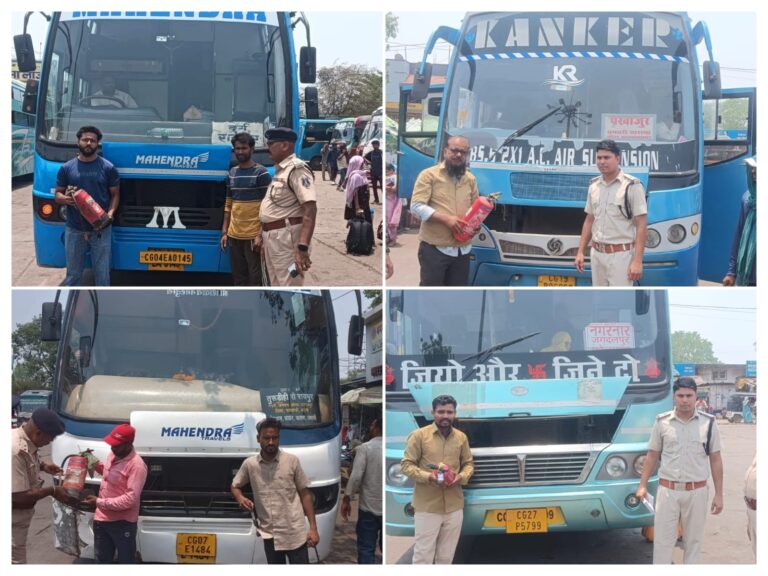 धमतरी 28 अप्रैल (आरएनएस) बस स्टैंड में जब पुलिस और परिवहन विभाग की संयुक्त टीम ने अचानक सघन जांच शुरू की तो कई बस संचालकों की लापरवाही खुलकर सामने आ गई, 28 अप्रैल 2026 को पुलिस अधीक्षक के निर्देशन में चलाए गए इस विशेष अभियान का मकसद साफ था—यात्रियों की सुरक्षा से कोई समझौता नहीं, टीम ने एक-एक बस की बारीकी से जांच की, फर्स्ट एड बॉक्स, अग्निशमन यंत्र और इमरजेंसी एग्जिट जैसे जरूरी सुरक्षा उपकरणों की मौजूदगी ही नहीं बल्कि उनकी कार्यशील स्थिति भी परखी गई, करीब 35 से 40 बसों की जांच के दौरान 10 बसें गंभीर खामियों के साथ पकड़ी गईं, कहीं फर्स्ट एड बॉक्स गायब मिला, कहीं फायर एक्सटिंग्विशर बेकार पड़ा था तो कहीं इमरजेंसी एग्जिट की व्यवस्था ही नहीं थी, यह लापरवाही सीधे यात्रियों की जान को जोखिम में डालने वाली थी, पुलिस ने बिना देरी किए मोटर व्हीकल एक्ट के तहत सख्त कार्रवाई करते हुए ₹5100 का समन शुल्क वसूला और परिवहन विभाग ने भी 10 बसों में फर्स्ट एड बॉक्स नहीं मिलने पर अलग से चालानी कार्रवाई की, मौके पर ही बस संचालकों और ड्राइवरों को सख्त हिदायत दी गई कि सभी सुरक्षा उपकरण अनिवार्य रूप से दुरुस्त रखें, वरना आगे और कड़ी कार्रवाई तय है, इस कार्रवाई ने साफ कर दिया कि धमतरी में अब लापरवाही बर्दाश्त नहीं होगी और सार्वजनिक परिवहन में सुरक्षा मानकों का पालन हर हाल में कराना पुलिस की प्राथमिकता है, बहरहाल यह जांच अभियान एक चेतावनी है कि यात्रियों की जान से खिलवाड़ करने वालों पर अब सीधा एक्शन होगा और नियम तोड़ने की कीमत चुकानी ही पड़ेगी।