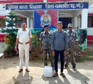 धमतरी, 08 नवंबर (आरएनएस)। सिहावा पुलिस की तत्परता – महुआ शराब की अवैध बिक्री करते आरोपी गिरफ्तार, शराब जब्त। एसपी धमतरी के निर्देशन में अवैध शराब पर लगातार कार्यवाही – सिहावा में आरोपी गिरफ्तार, न्यायिक रिमांड पर जेल भेजा गया। एसपी.धमतरी के निर्देशन में जिलेभर में अवैध शराब बिक्री एवं तस्करी के विरुद्ध विशेष अभियान चलाया जा रहा है। इसी क्रम में थाना सिहावा पुलिस द्वारा त्वरित कार्यवाही करते हुए एक आरोपी को अपने घर के सामने अवैध रूप से महुआ शराब बेचते हुए रंगे हाथ पकड़ा गया। आरोपी यशपाल नेताम पिता सुकालूराम नेताम उम्र 31 वर्ष निवासी बेलरगांव चार्लीपारा, थाना सिहावा के कब्जे से 06 लीटर महुआ शराब, अनुमानित मूल्य 1,200/- रूपये जब्त की गई। थाना सिहावा पुलिस ने आरोपी के विरुद्ध अपराध क्रमांक 72/25 धारा 34(2) आबकारी अधिनियम के तहत अपराध पंजीबद्ध कर आरोपी को न्यायिक रिमांड पर जेल भेजा है। आरोपी का नाम- यशपाल नेताम पिता सुकालूराम नेताम उम्र 31 वर्ष निवासी बेलरगांव चार्लीपारा, थाना सिहावा,जिला धमतरी (छ.ग.)। धमतरी पुलिस द्वारा जिले में अवैध शराब, जुआ एवं सट्टा जैसे सामाजिक अपराधों के विरुद्ध सख्त कार्यवाही लगातार जारी है।