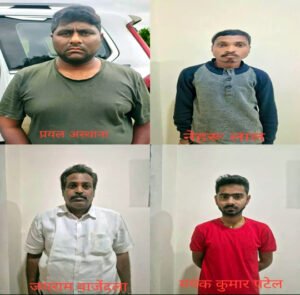 मामले में पुलिस ने प्रयल अस्थाना पिता प्रदीप अस्थाना पता बिरला ग्वालियर मध्यप्रदेश, नेहरू लाल पिता सुखदेव पता 12-1 वार्ड नंबर 09 वीटीसी सावित्रीपुर, पोस्ट बरतीकला थाना बंसतपुर जिला बलरामपुर, मयंक कुमार पटेल पिता सच्चिदानंद पटेल पता 51-1 ग्राम सावित्रीपुर पोस्ट बरतीकला, पुलिस चौकी वाड्रफनगर थाना बसंतपुर, जिला-बलरामपुर तथा जयराम वाजेंदला पिता वीरा राघव राव पता प्लॉट 103, साई होम्स, यक्शन पेड़ाघंटियाडा विशाखापट्टनम, आंध्रप्रदेश को गिरफ्तार किया है।