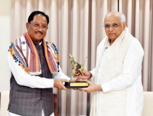मुख्यमंत्री साय ने गुजरात के मुख्यमंत्री भूपेंद्र पटेल को बस्तर की लोककला और छत्तीसगढ़ के सांस्कृतिक गौरव पर आधारित बस्तर आर्ट तथा बस्तर दशहरा की कॉफी टेबल बुक भेंट की। इस पर मुख्यमंत्री पटेल ने छत्तीसगढ़ की समृद्ध लोकसंस्कृति की सराहना करते हुए राज्य के रजत जयंती वर्ष के अवसर पर संचालित विकासात्मक और जनकल्याणकारी कार्यों के लिए मुख्यमंत्री साय को शुभकामनाएँ दीं।