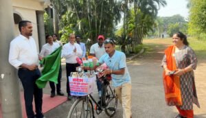 धमतरी, 11 नवंबर (आरएनएस)। धमतरी जिले के ग्राम पतेरापारा निवासी युवा तुलसीराम साहू ने समाज में नशा मुक्ति का संदेश फैलाने के उद्देश्य से आज साइकिल यात्रा की शुरुआत की। वे धमतरी से नागपुर (महाराष्ट्र) के लिए रवाना हुए। कलेक्टर अबिनाश मिश्रा ने कलेक्ट्रेट परिसर से हरी झंडी दिखाकर यात्रा को रवाना किया और उनके जुझारू एवं प्रेरणादायी कार्य की सराहना की।