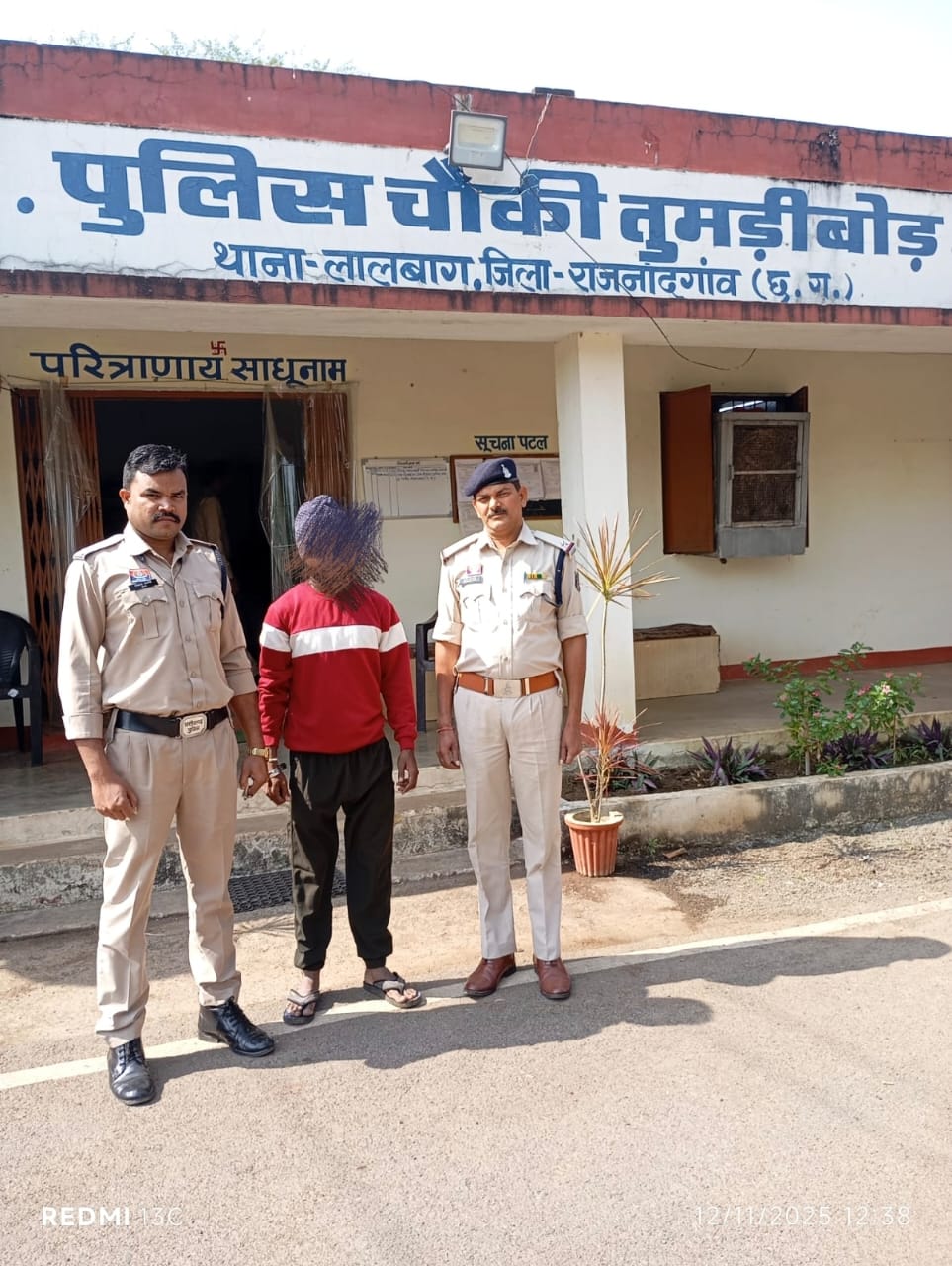 राजनांदगांव, 12 नवम्बर (आरएनएस)। पुलिस अधीक्षक राजनादगांव अंकिता शर्मा के निर्देश एवं अतिरिक्त पुलिस अधीक्षक राहुल देव शर्मा तथा नगर पुलिस अधीक्षक वैशाली जैन जिला राजनादगांव के मार्गदर्शन में चौकी प्रभारी तुमडीबोड़ निरीक्षक दिलीप पटेल के नेतृत्व में प्रकरण के फरार आरोपी निहाल खोबरागढ़े, पिता भास्कर खोबरागडे, उम्र 32 साल, निवासी मालिपारा, थाना का, जिला भंडारा (महाराष्ट्र)को गिरफ्तार कर माननीय न्यायालय में पेश किया जा रहा है। प्रकरण में 05 आरोपियों की गिरफ्तारी पूर्व में की जा चुकी है पशु तस्करी के अपराध में सलिप्त अन्य व्यक्तियों का पता तलाश किया जा कर विधिवत गिरफ्तारी कार्यवाही की जायेगी। उक्त क्रार्यवाही में पुलिस चौकी प्रभारी दिलीप पटेल, सउनि0 चुन्नी लाल साहू, आर0 लोकेश साहू का कार्य सराहनीय रहा।