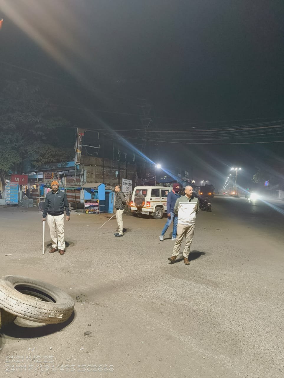० रात्रि 08:00 बजे से 12:00 बजे तक नाकाबंदी एवं पैदल पेट्रोलिंग कर, की गई सघन चेकिंग