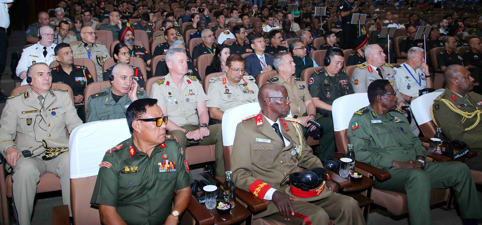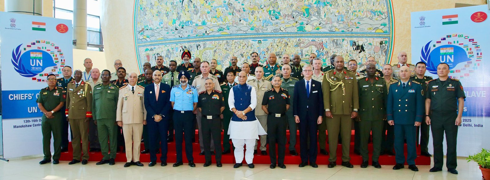 (14कैप्शन14)नई दिल्ली में मानेकशॉ सेंटर में चीफ्स कॉन्क्लेव के उद्घाटन सत्र में एकत्रित होते हुए लोगों को श्री राजनाथ सिंह संबोधित करते हुए।