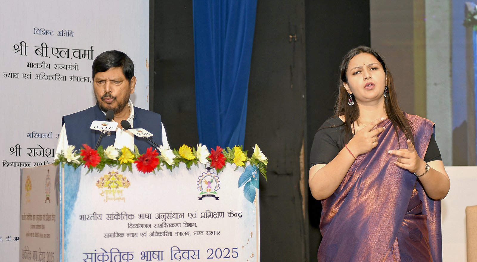 सामाजिक न्याय एवं अधिकारिता राज्य मंत्री रामदास अठावले नई दिल्ली में ‘सांकेतिक भाषा दिवस - 2025’ समारोह को संबोधित करते हुए।